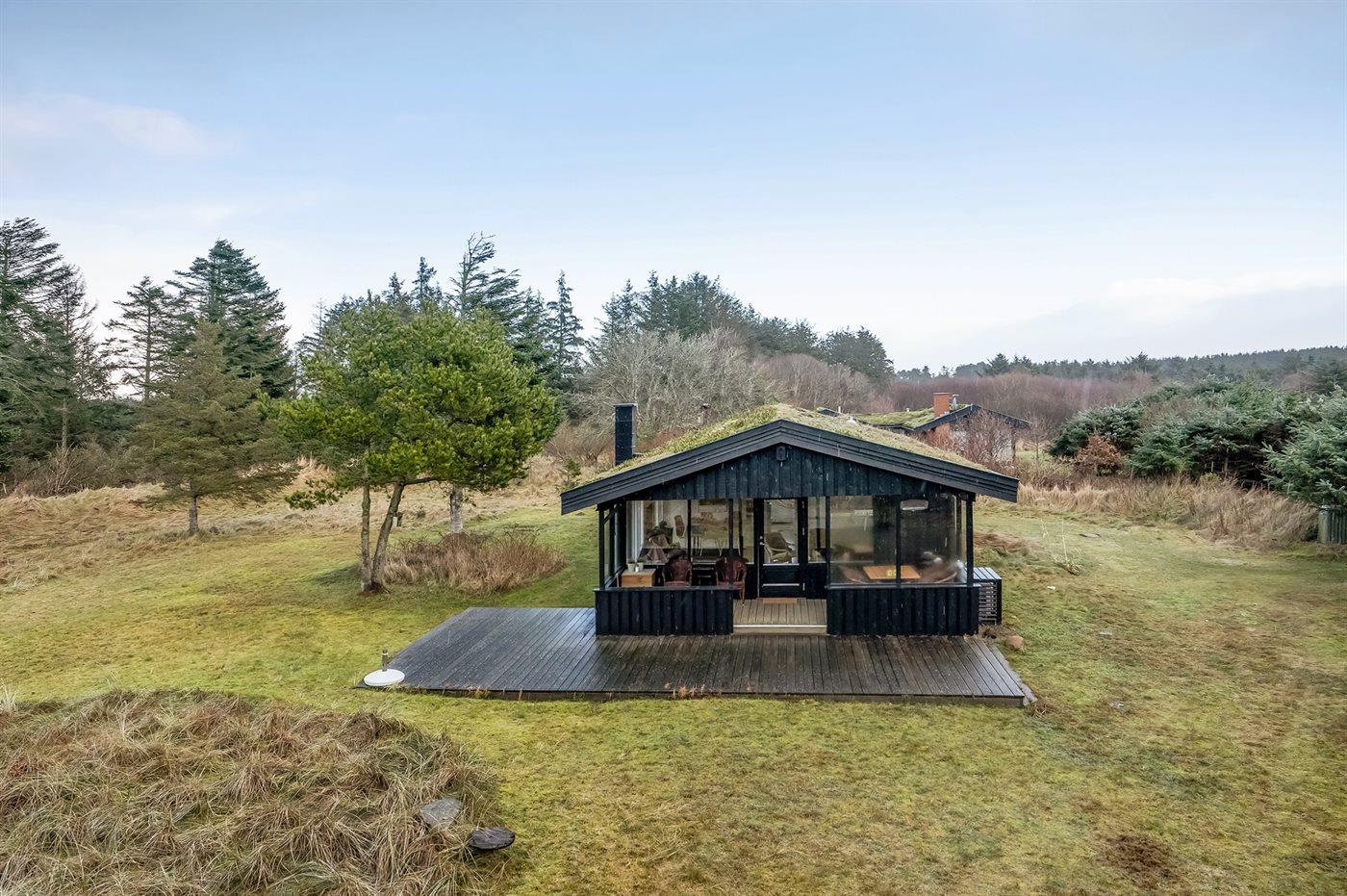 Hyggeligt sommerhus i naturskønne omgivelser nær hav og strand med stor grund og moderne faciliteter.