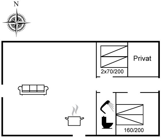 Der er i alt 2 soveværelser. Sovepladserne fordeler sig på: 2 sovepladser i dobbeltseng. 2 sovepladser i enkeltsenge.
