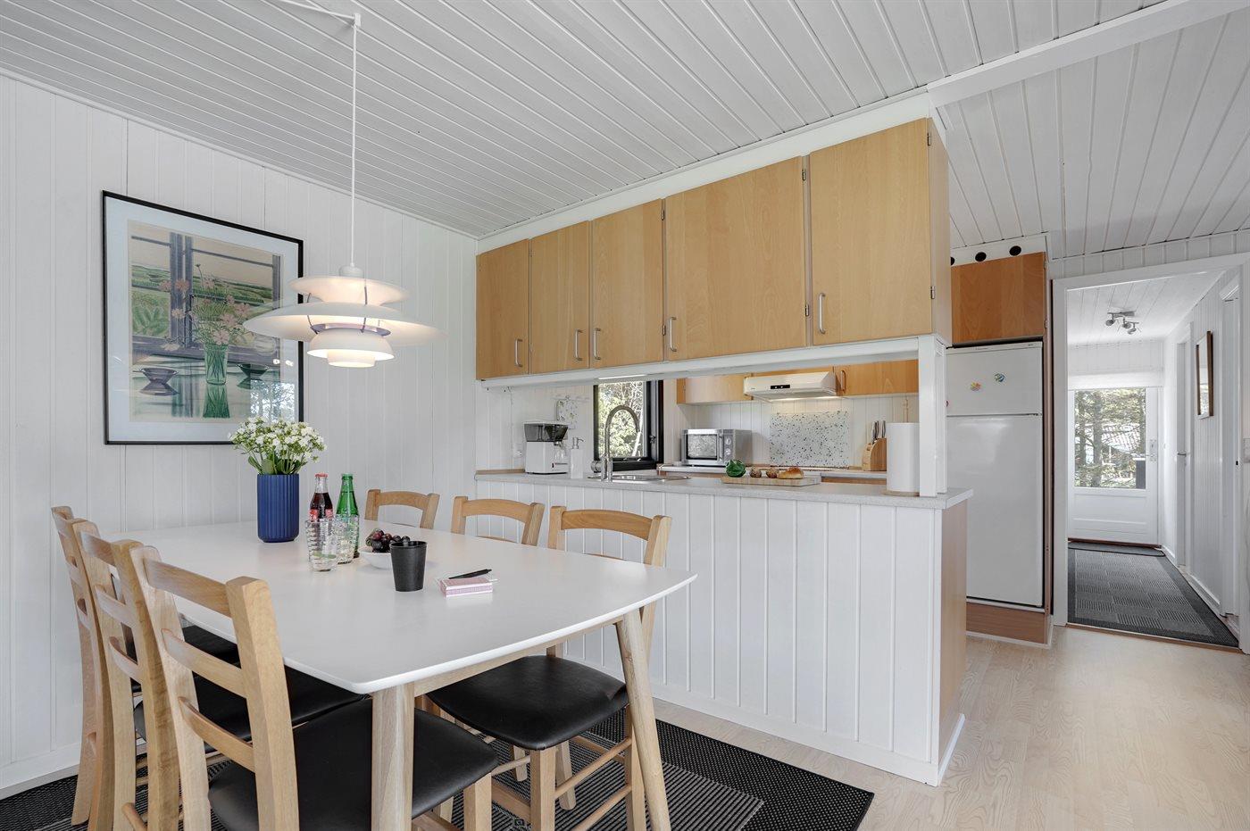 Køkkenet er udstyret med 1 køleskab. Der er 4 keramiske kogeplader, varmluftovn, mikrobølgeovn samt opvaskemaskine.