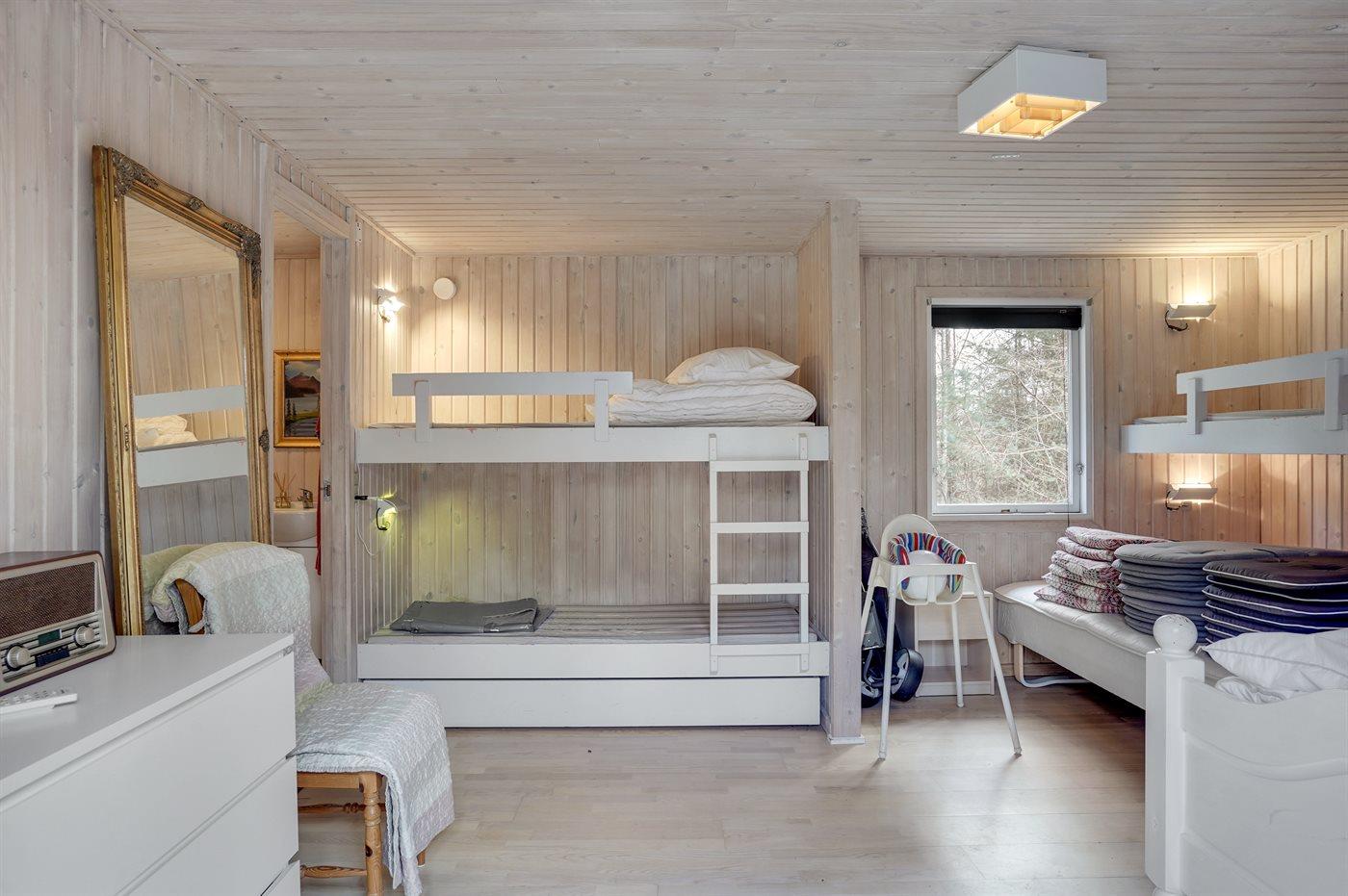 Der er i alt 3 soveværelser. Sovepladserne fordeler sig på: 6 sovepladser i dobbeltsenge. 1 soveplads i enkeltseng. 4 af disse sovepladser befinder sig i et anneks.
