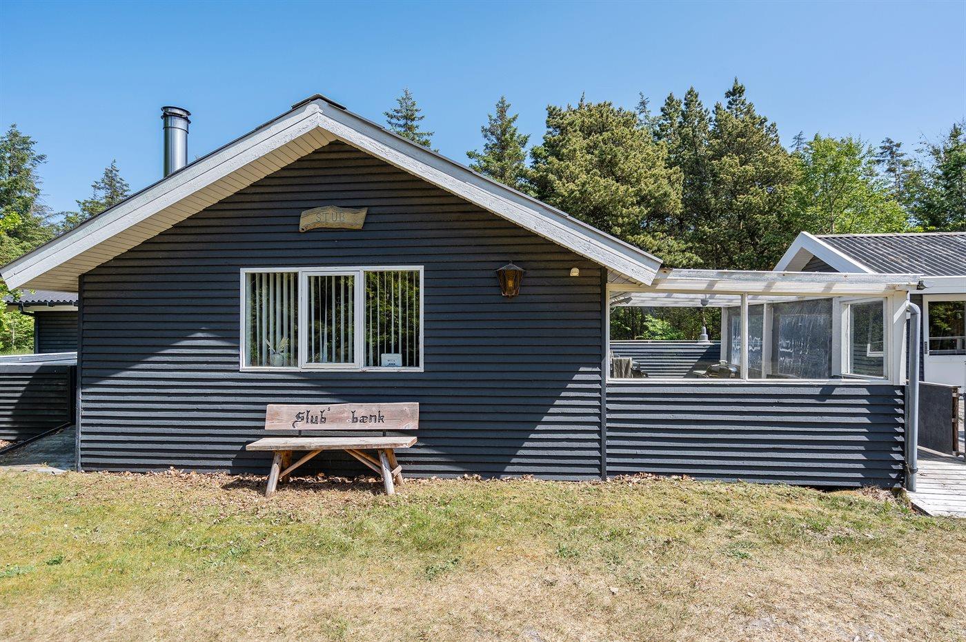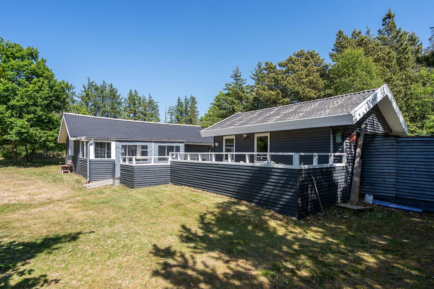 Et dejligt sommerhus med et stort lukket og delvist overdækket terrasseareal - kun 700 m fra badestranden i Saltum.