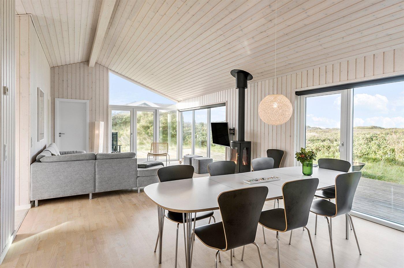 Dette sommerhus er en moderne fortolkning af det klassiske sommerhus med en fantastisk beliggenhed i første klitrække med en grund, der strækker sig helt ned til vandet ved Saltum Strand.