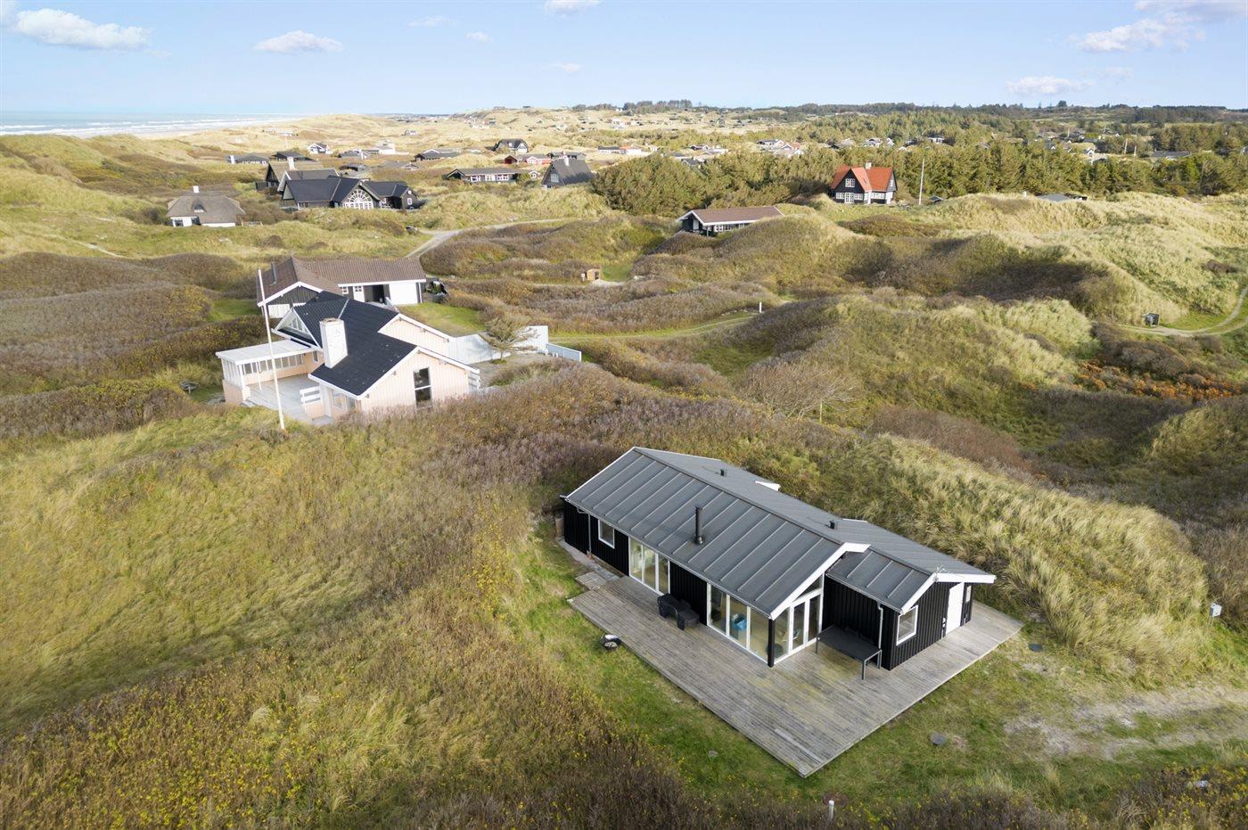 Moderne sommerhus i første klitrække ved Vesterhavet med fantastisk terrasse og smuk udsigt.