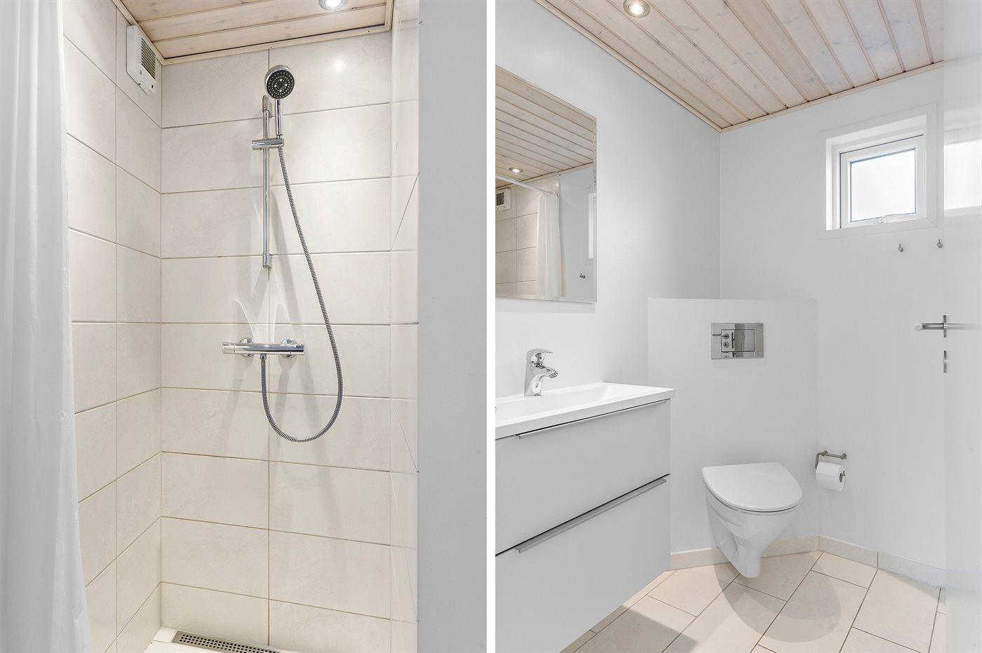Der er 2 badeværelser med bruseniche og 2 toiletter. Der er gulvvarme på 2 badeværelser.