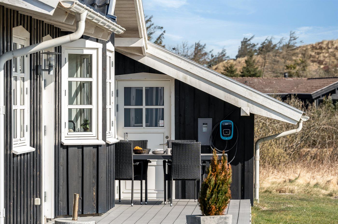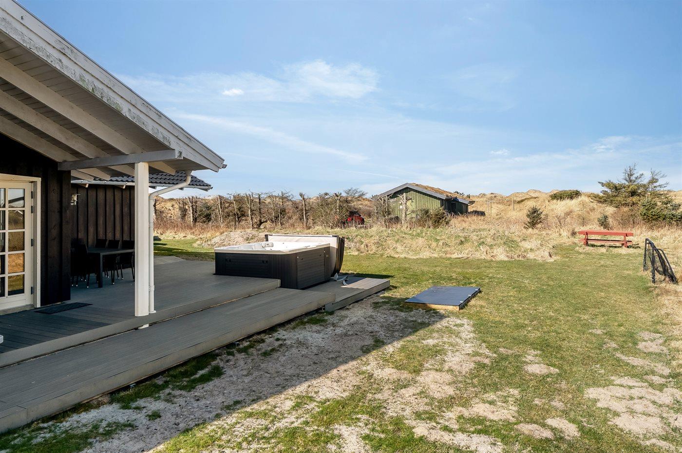 Ferieboligen er beliggende på en 1594 m² stor havegrund. Der er 550 m til havet. Nærmeste forretning er beliggende i en afstand af 4000 m. Til ferieboligen hører 174 m² terrasseareal. Der er redskabsrum. Gynge. Sandkasse. Fodboldmål. Udendørs bruser. Grill til rådighed. Udendørs vask. Der er installeret stik til opladning af elbil. Med 22 kW ladeeffekt. Parkering ved ferieboligen.