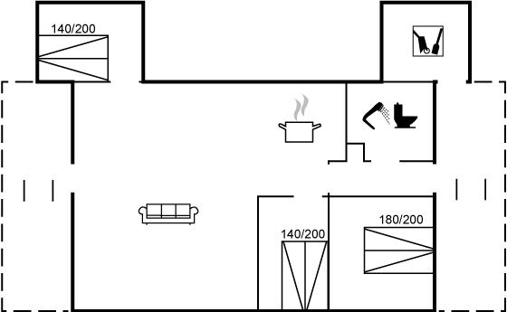 Sommerhuset egner sig til 6 personer. Ferieboligen er på 66 m² og er bygget i 1985. Det er tilladt at medbringe 2 husdyr. Ferieboligen er udstyret med 1 energivenlig luft til luft varmepumpe. Ferieboligen har vaskemaskine. Frysekapacitet på 80 liter. Der er desuden brændeovn.