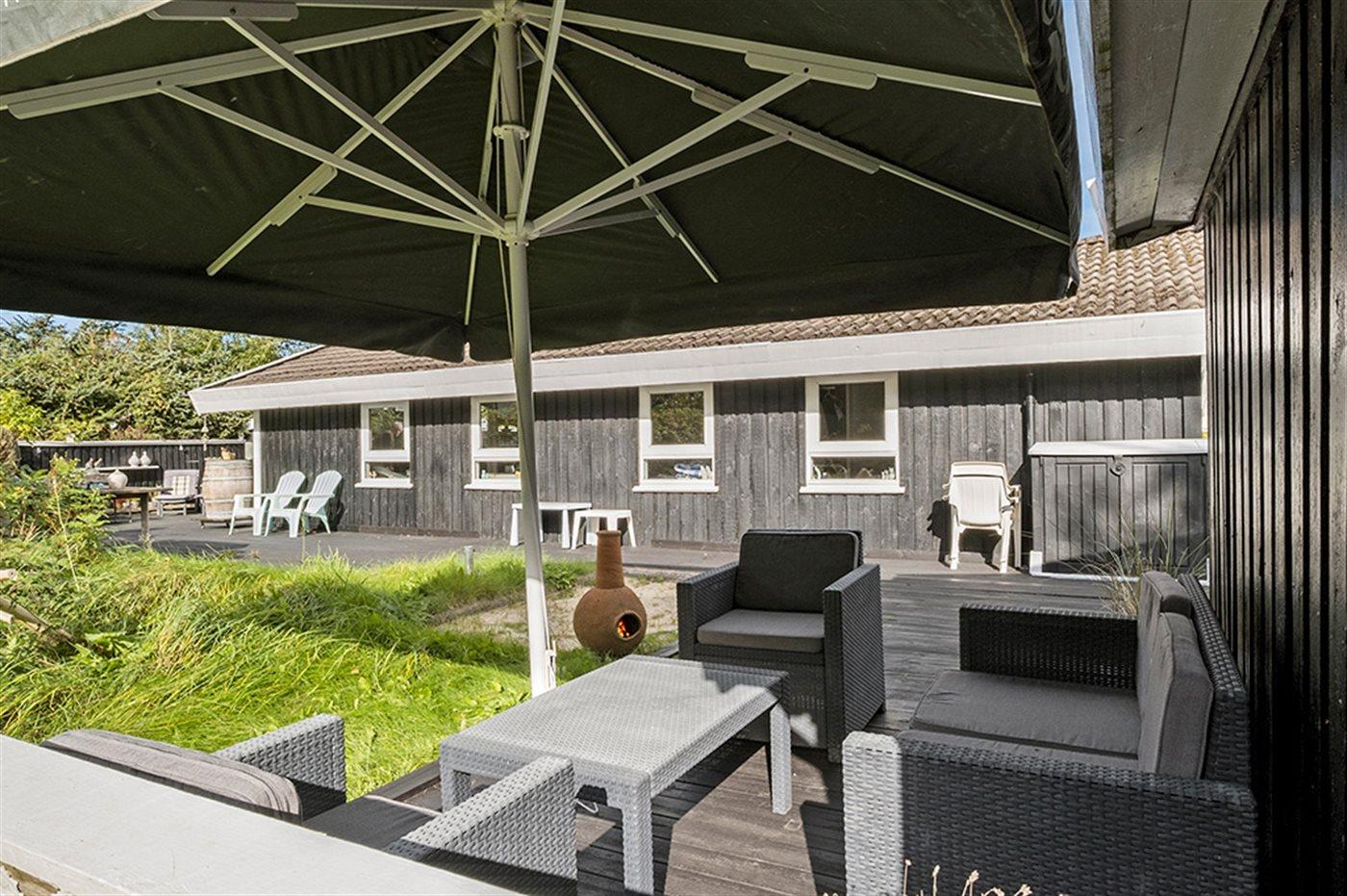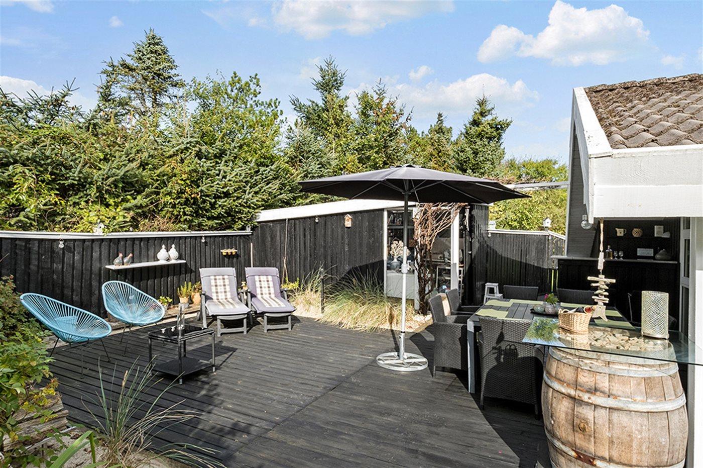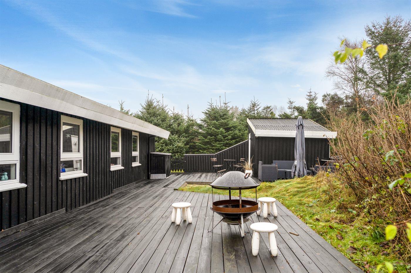 Ferieboligen er beliggende på en 1701 m² stor naturgrund. Der er 2000 m til havet. Nærmeste forretning er beliggende i en afstand af 3500 m. Der er en golfbane i en afstand af 12000 m. Til ferieboligen hører åbent terrasseareal. Desuden er der overdækket terrasse. Der er redskabsrum. Sandkasse. Bålsted. Grill til rådighed. Der er installeret stik til opladning af elbil. Parkering ved ferieboligen.