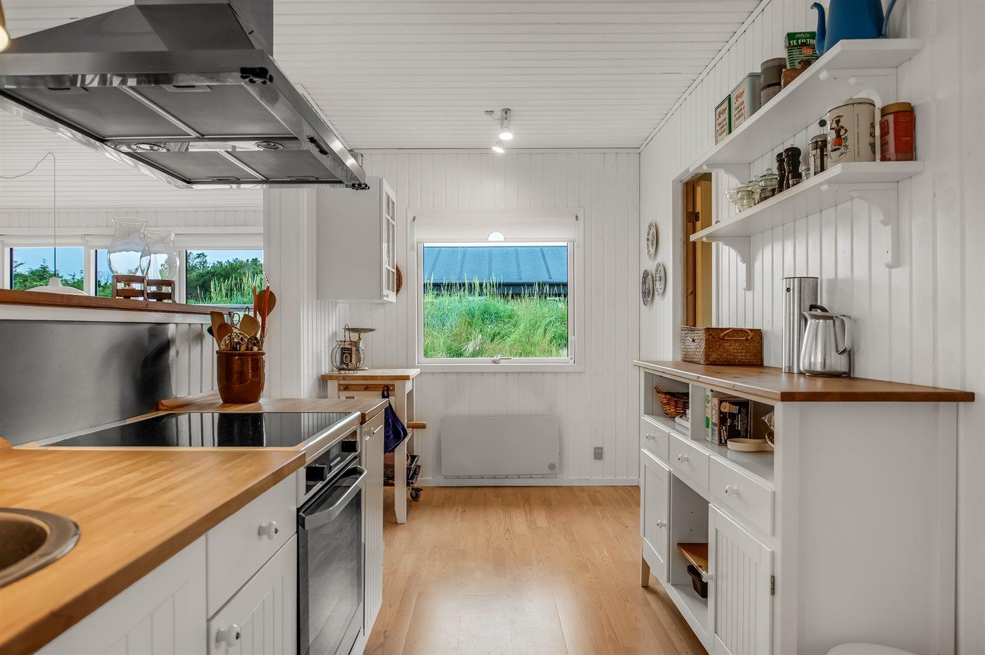 Køkkenet er udstyret med 1 køleskab. Der er 4 induktionskogeplader, varmluftovn samt opvaskemaskine.