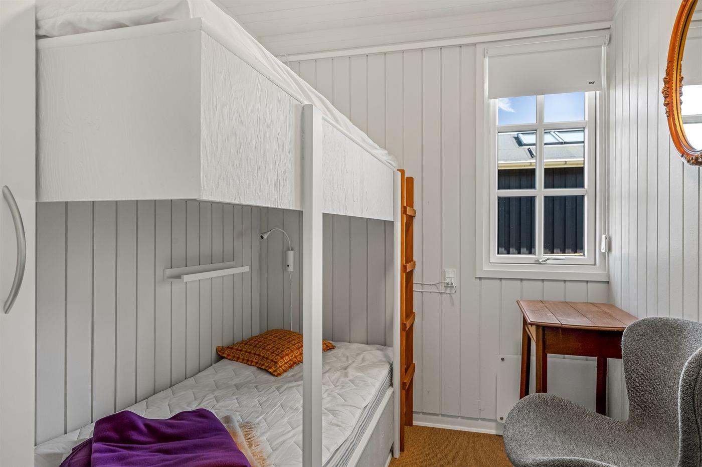 Der er i alt 3 soveværelser. Sovepladserne fordeler sig på: 2 sovepladser i dobbeltseng. 2 sovepladser i enkeltsenge. 2 sovepladser i køjeseng. 2 af disse sovepladser befinder sig i anneks.