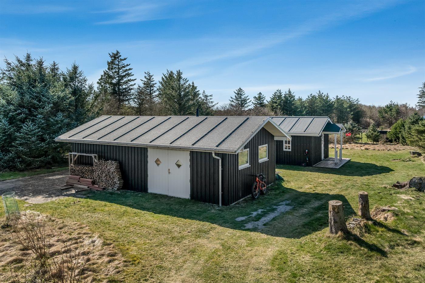 Ferieboligen er beliggende på en 5188 m² stor naturgrund. Der er 1000 m til havet. Nærmeste forretning er beliggende i en afstand af 4000 m. Der er en golfbane i en afstand af 12000 m. Til ferieboligen hører åbent terrasseareal. Desuden er der overdækket terrasse. Der er redskabsrum. Sandkasse. Fodboldmål. Der ligger en legeplads i en afstand af 4000 m. Udendørs bruser. Grill til rådighed. Der er installeret stik til opladning af elbil. Type 2 stik. Med 16 kW ladeeffekt. Parkering ved ferieboligen.