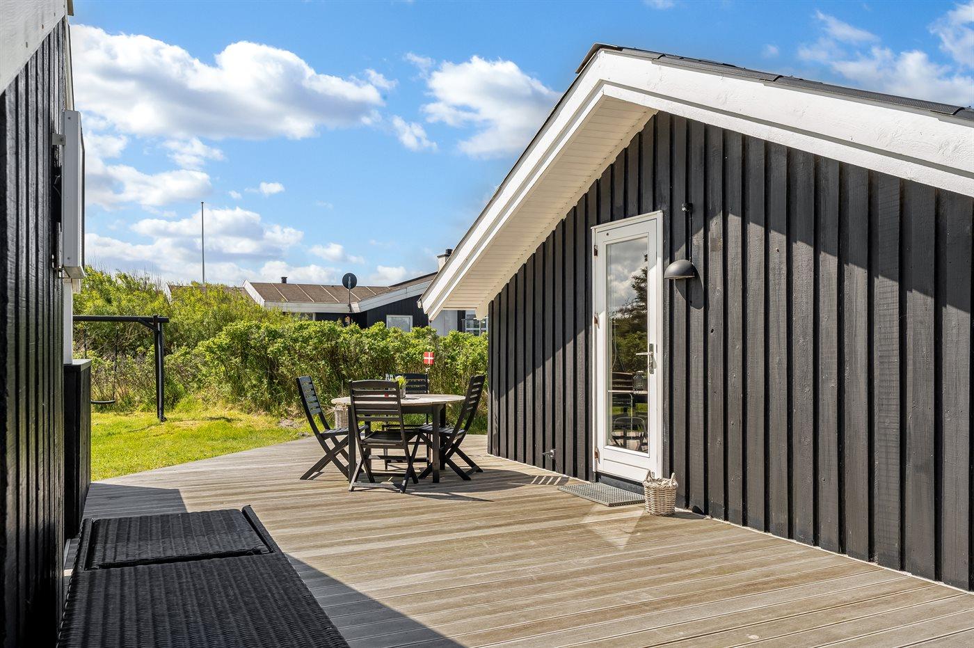 Ferieboligen er beliggende på en 1500 m² stor naturgrund. Der er 750 m til havet. Nærmeste forretning er beliggende i en afstand af 4000 m. Der er en golfbane i en afstand af 6000 m. Til ferieboligen hører åbent terrasseareal. Der er redskabsrum. Gynge. Grill til rådighed. Der er installeret stik til opladning af elbil. Parkering ved ferieboligen.
