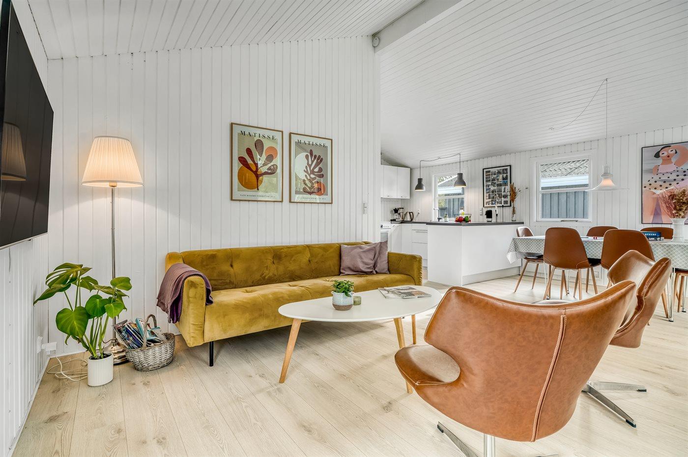 Indendørs fremstår huset lyst og indbydende med en god planløsning, hvor der er tænkt over detaljerne. Udenfor finder du flere skønne terrasser, der indbyder til afslapning i solen, hyggelige grillaftener eller en kop kaffe i læ og ro.