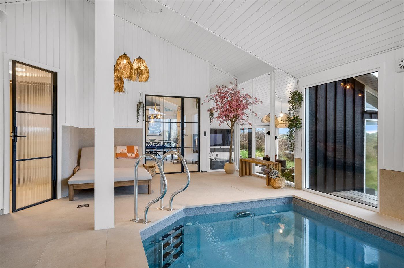 Huset byder på egen swimmingpool, perfekte terrasser til solrige dage samt en overdækket terrasse, hvor I kan nyde ferien i læ og ro – uanset vejret. Området er ideelt for naturelskere med et væld af stisystemer til cykling, løb og lange gåture gennem det smukke klitlandskab.