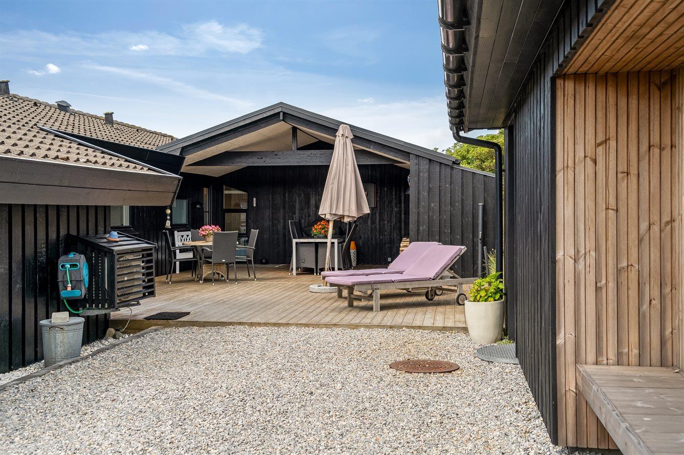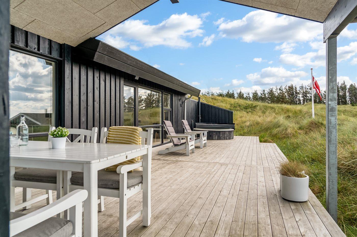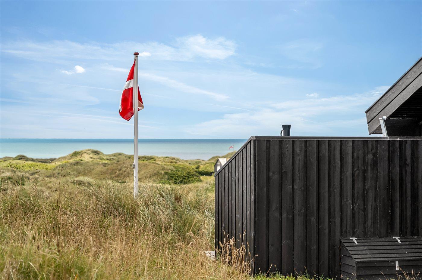 Ferieboligen er beliggende på en 2131 m² stor klitgrund. Der er 600 m til havet. Nærmeste forretning er beliggende i en afstand af 6000 m. Til ferieboligen hører åbent terrasseareal. Desuden er der overdækket terrasse. Der er redskabsrum. Udendørs bruser. Grill til rådighed. Der er installeret stik til opladning af elbil. CEE stik. Parkering ved ferieboligen.