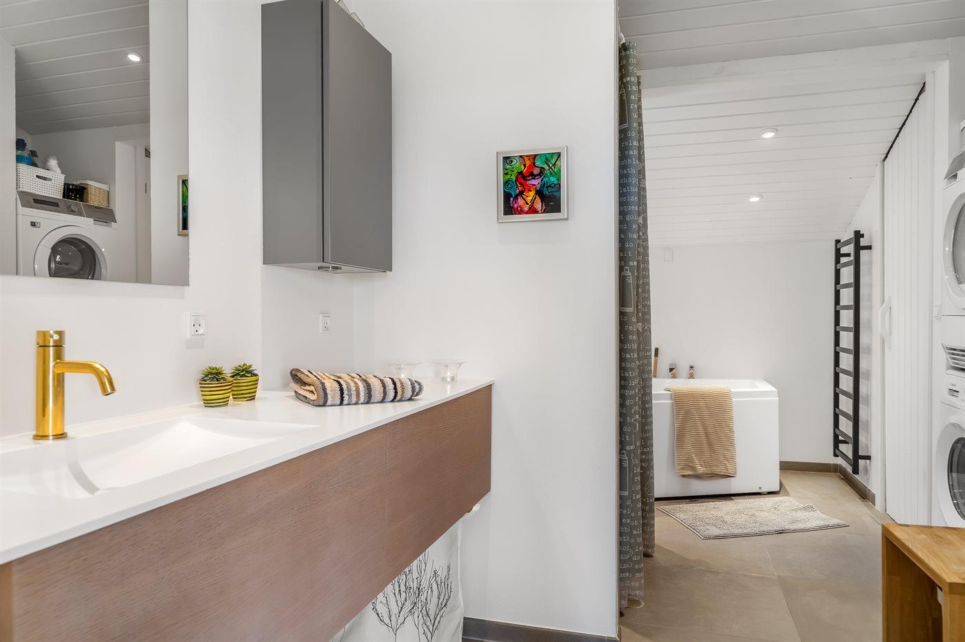 Der er 2 badeværelser med bruseniche og 2 toiletter I saunaen er der mulighed for afslapning.