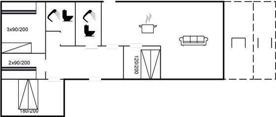 Der er i alt 4 soveværelser. Sovepladserne fordeler sig på: 2 sovepladser i dobbeltseng. 1 soveplads i enkeltseng. 4 sovepladser i køjesenge. 2 sovepladser i sovesofa (dobbelt). Derudover er der 1 stk. barneseng.