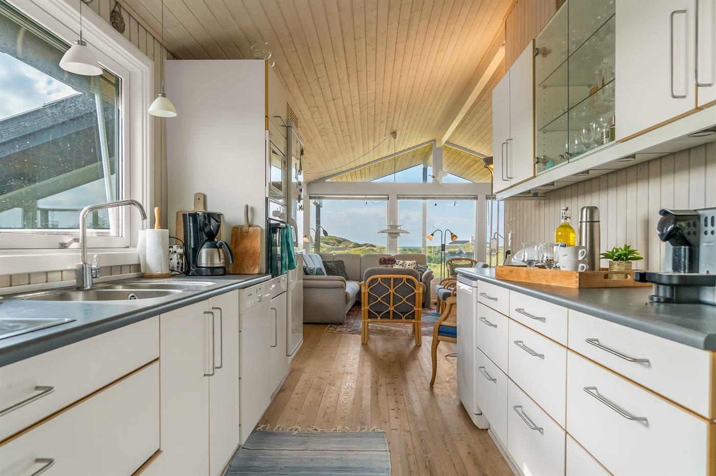 Køkkenet er udstyret med 1 køleskab. Der er 4 keramiske kogeplader, varmluftovn, mikrobølgeovn samt opvaskemaskine.
