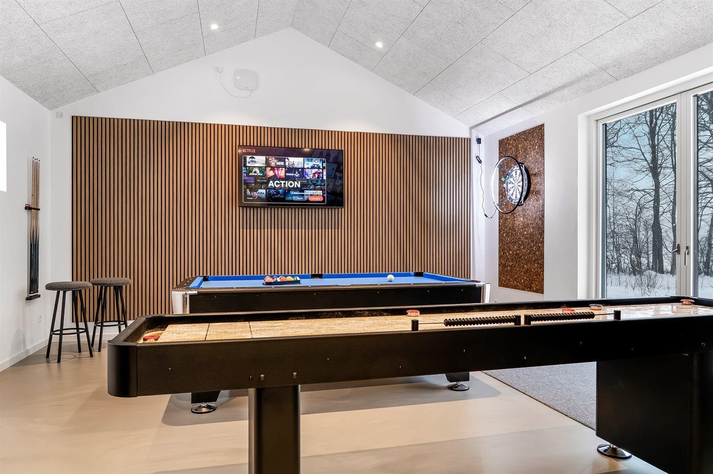 I aktivitetsrummet er der følgende udstyr: Billard. Poolbord. Dart. Shuffleboard.