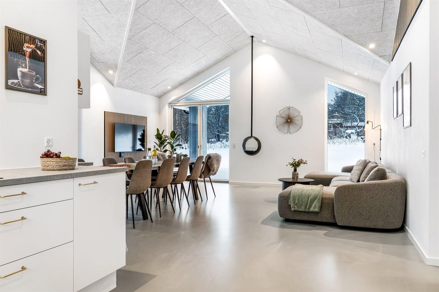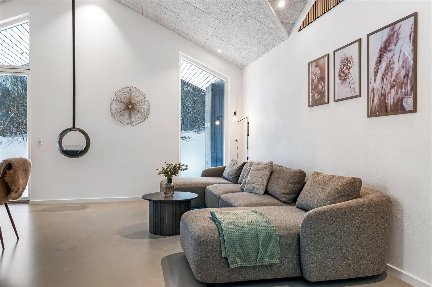 Sommerhuset er opført i høj kvalitet med sans for de små detaljer, og her er tænkt på både hygge og underholdning. Lyse rum, moderne indretning og store vinduespartier skaber en dejlig atmosfære.