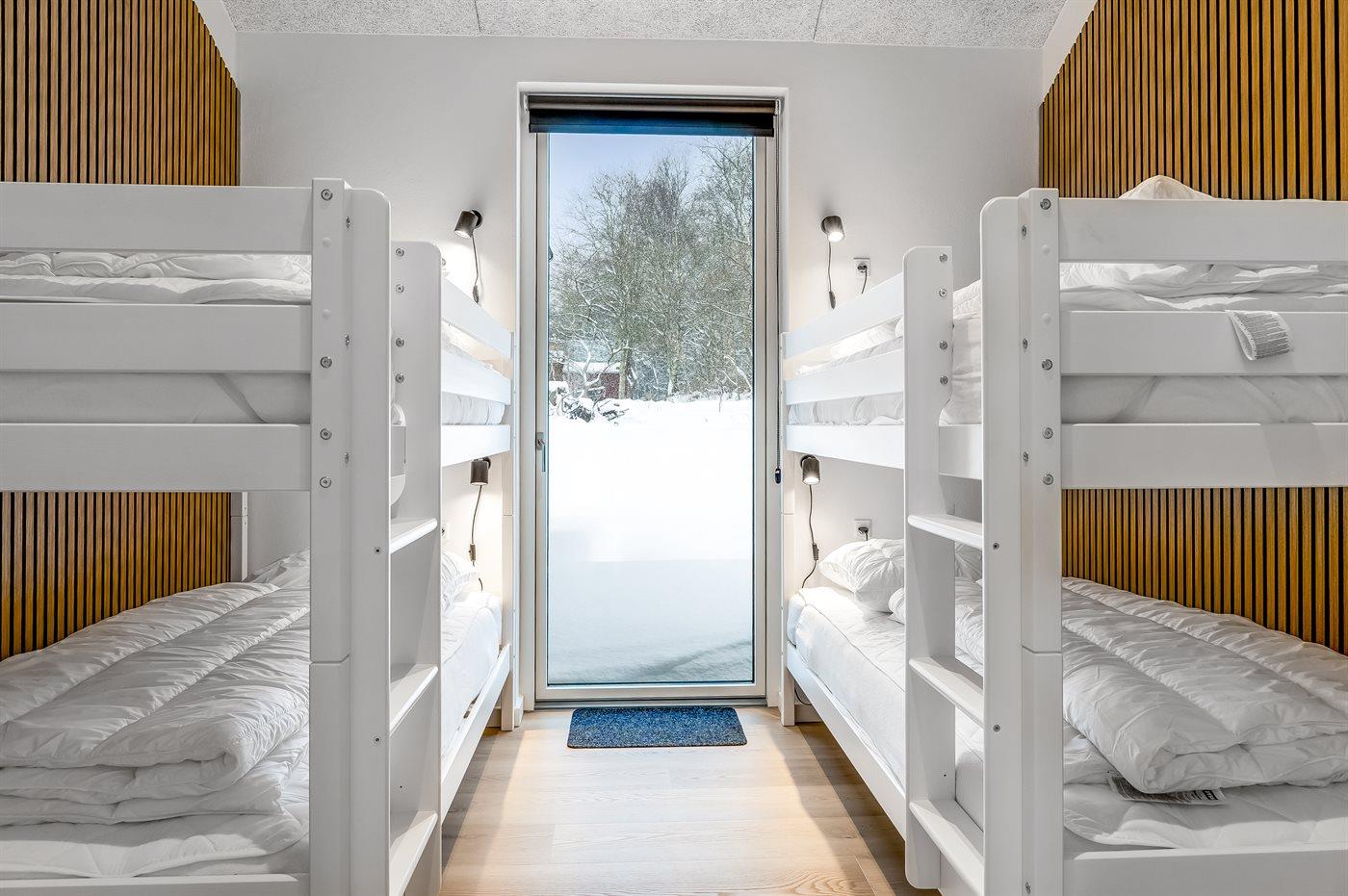 Der er i alt 4 soveværelser. Sovepladserne fordeler sig på: 6 sovepladser i dobbeltsenge. 4 sovepladser i køjesenge. 2 af disse sovepladser befinder sig i et anneks. Derudover er der 1 stk. barneseng.