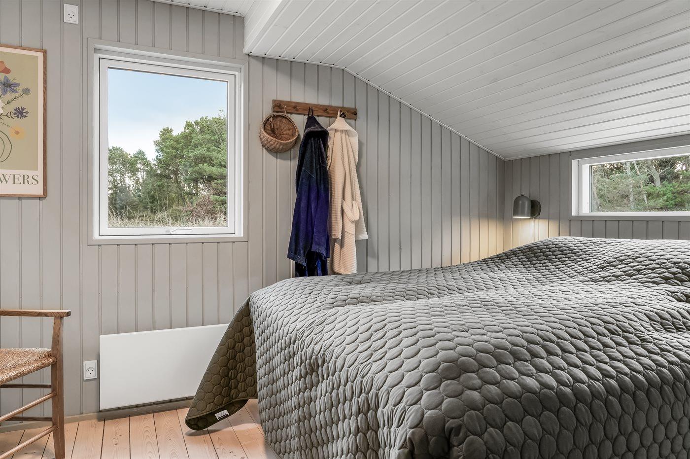 Der er i alt 3 soveværelser. Sovepladserne fordeler sig på: 6 sovepladser i dobbeltsenge. 2 sovepladser i alkove. 2 af disse sovepladser befinder sig i stuen.