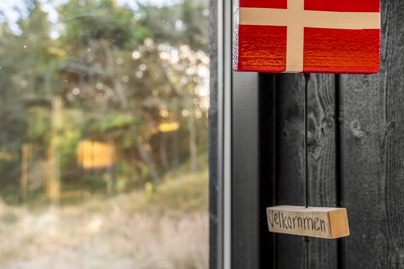 Ferieboligen er beliggende på en 3224 m² stor naturgrund. Der er 600 m til havet. Nærmeste forretning er beliggende i en afstand af 5000 m. Til ferieboligen hører åbent terrasseareal. Udendørs sauna. Grill til rådighed. Der er installeret stik til opladning af elbil. Type 2 stik. Med 11 kW ladeeffekt. Parkering ved ferieboligen.