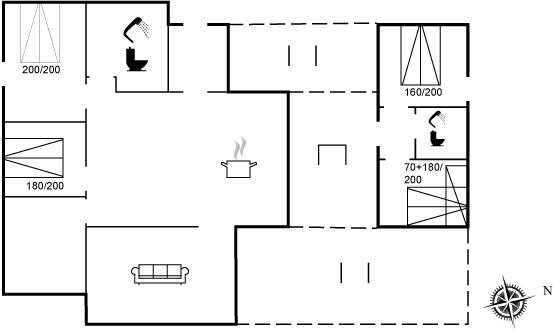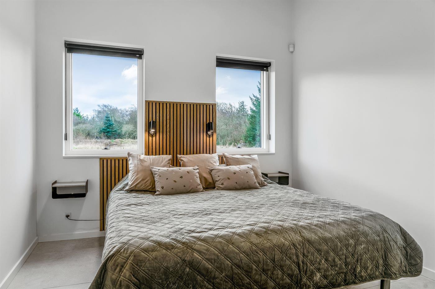 Der er i alt 4 soveværelser. Sovepladserne fordeler sig på: 8 sovepladser i dobbeltsenge.1 soveplads i køjeseng. 5 af disse sovepladser befinder sig i anneks.