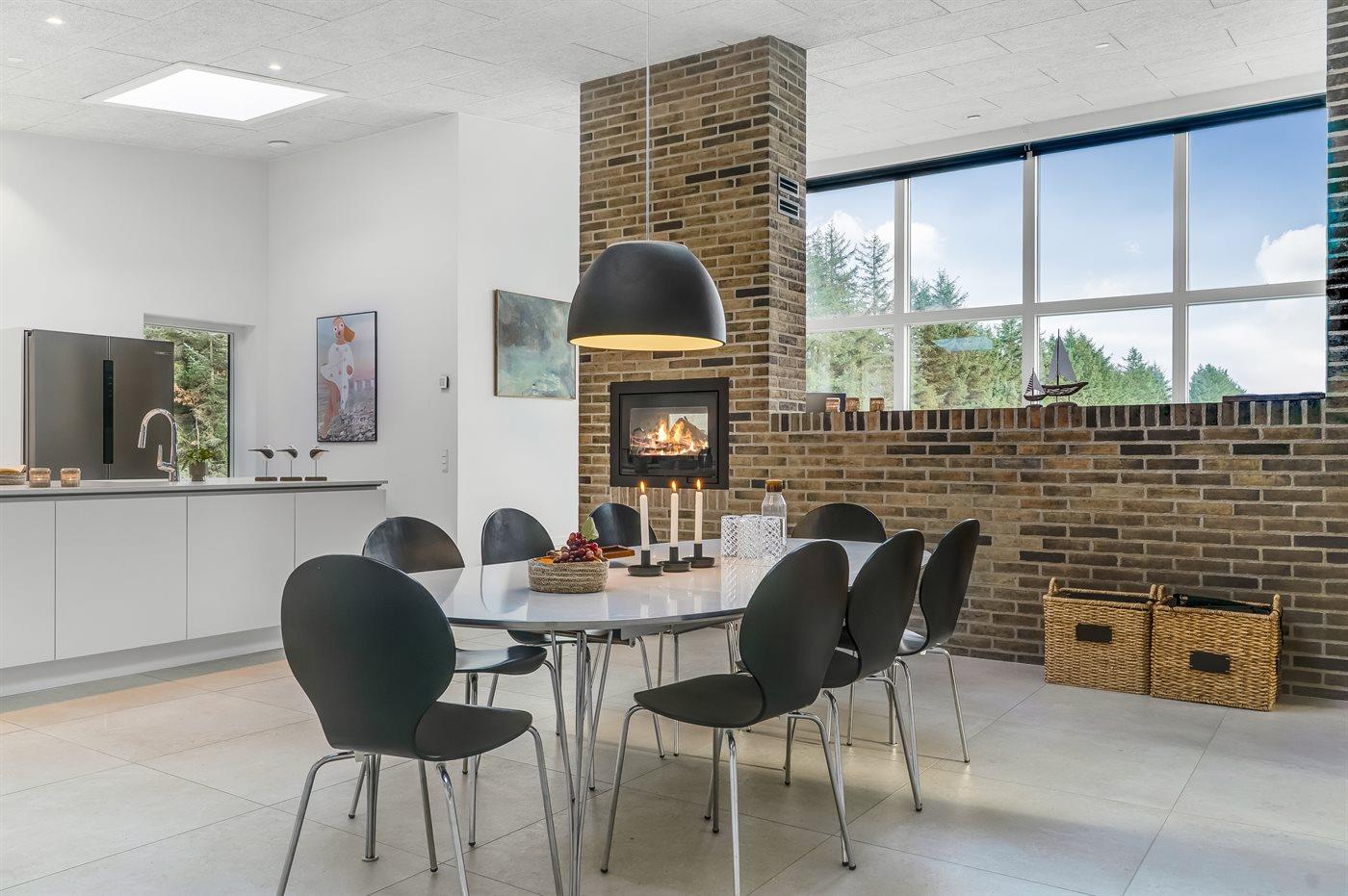 Dette moderne og indbydende sommerhus giver jer de bedste rammer for en ferie fyldt med komfort og oplevelser. Huset byder på sin egen hjemmebiograf, hvor film kan nydes fra ægte biografsæder. Den store opholdsstue imponerer med gulv-til-loft vinduer, der lukker naturen helt ind i rummet. På den rummelige naturgrund ligger endda en privat sø – et sjældent og stemningsfuldt syn midt i det fredelige landskab omkring Saltum.