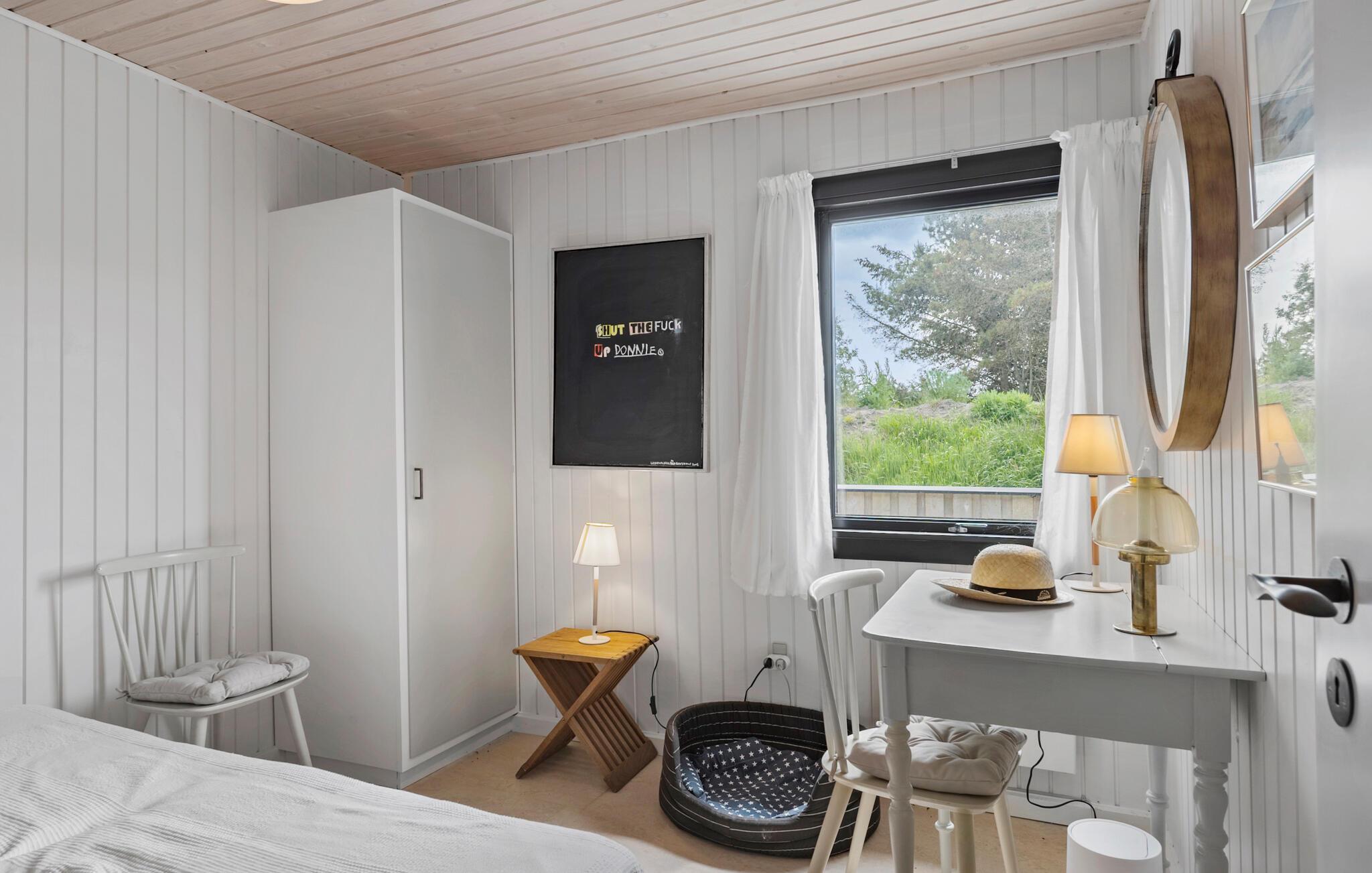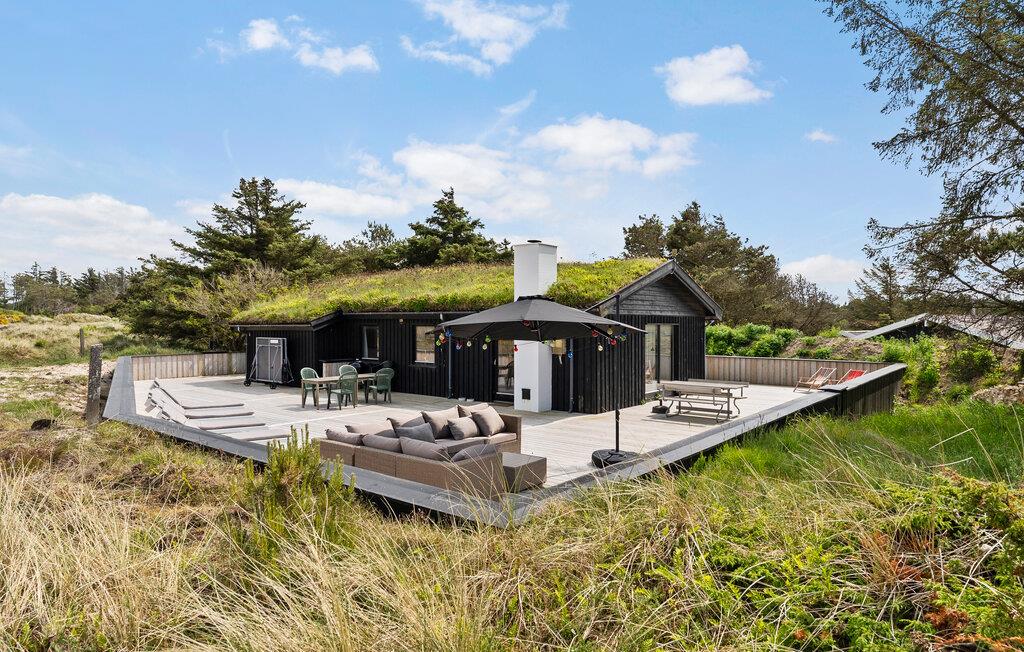 Dette lyse og hyggelige feriehus byder jer velkommen omgivet af klitlandskab og kun en kort gåtur fra den lange sandstrand. Nyd harmoniske timer i det åbne opholdsrum, hvor I sammen kan lave mad, streame en film på den hyggelige sofa eller lytte til pejsens sagte knitren, men I spiller sjove spil sammen.