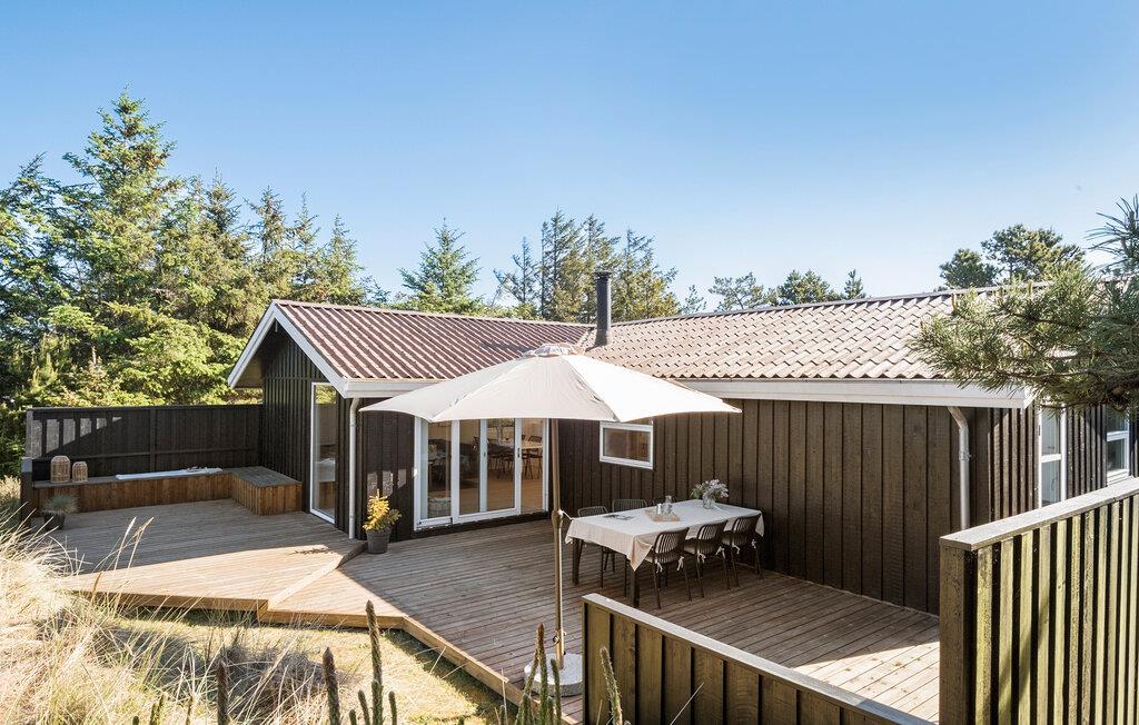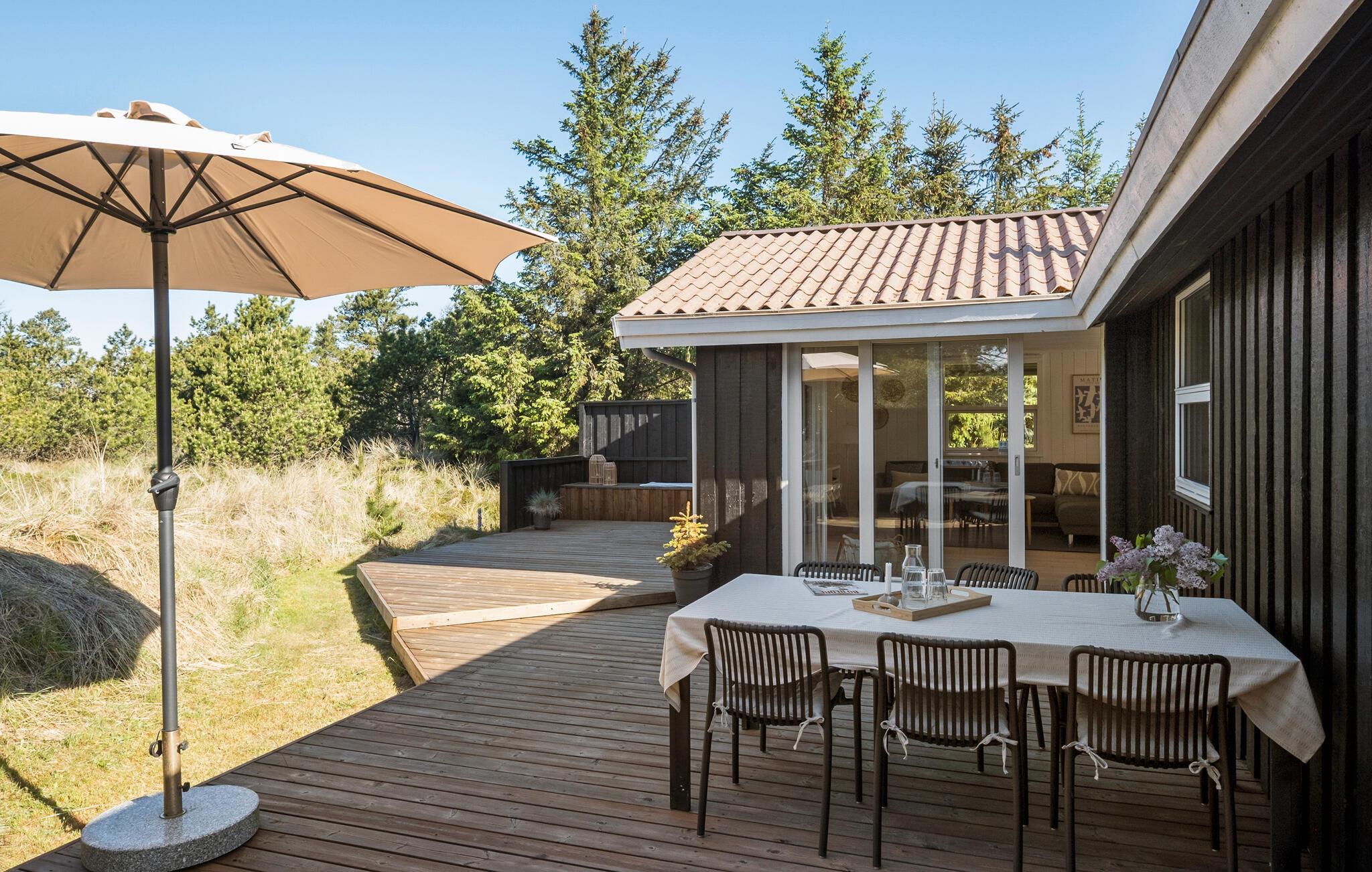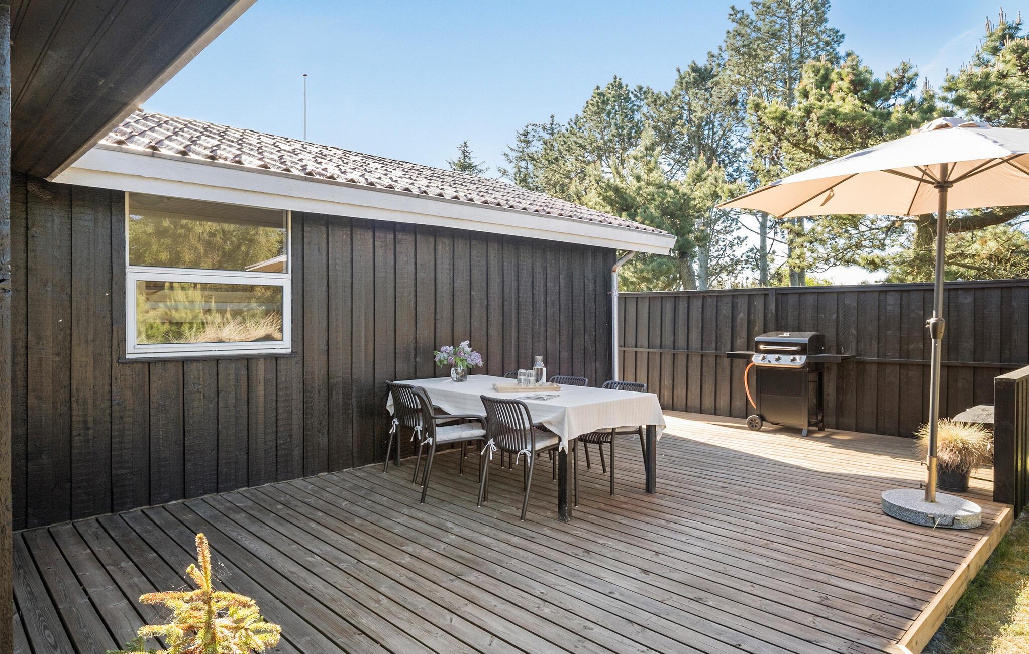 Hyggeligt feriehus i Saltum med åben terrasse og udsigt til naturskønne områder.