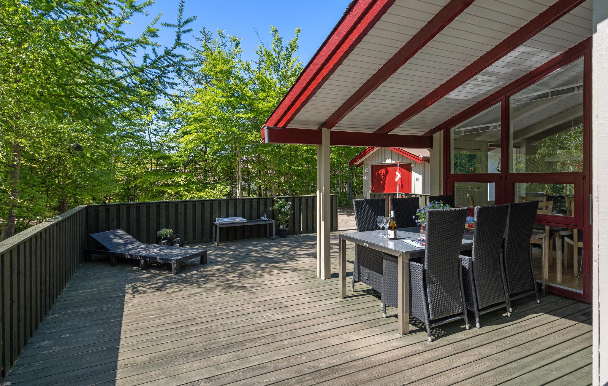 Nyd ferien i det rummelige køkken/alrum med skønt lysindfald og 2 udgange til terrasserne og naturen. Der er en skøn spiseplads, dejlig sofagruppe og en hyggekrog med 2 gode lænestole. Der er 3 indbydende værelser med gode senge og et dejligt stort nyere badeværelse med spabad.