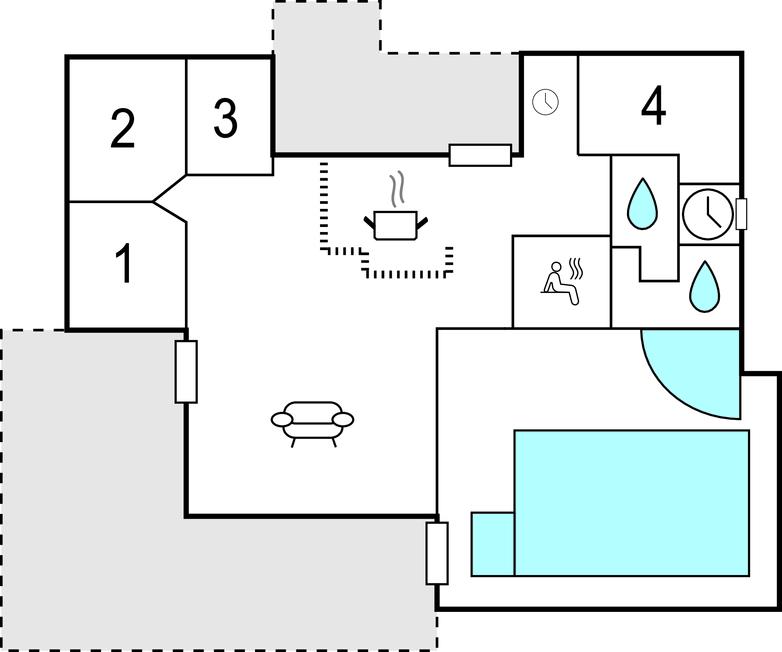 Soveværelse 6m2 (nr. 4) - 1 Soveplads. (Enkeltseng(e)). 2 Sovepladser. (Dobbeltseng(e)).