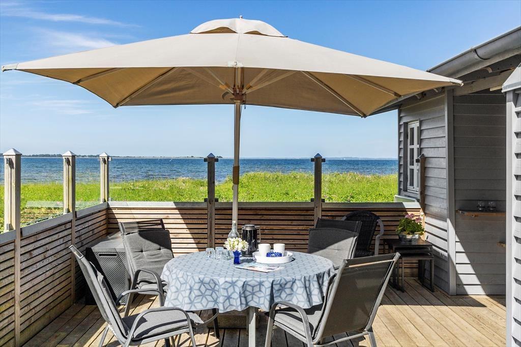 Hyggeligt sommerhus, beliggende i 1. række til vandet ved Sandager Næs. Der er en flot panoramaudsigt over vandet fra både have og hus. Huset indeholder et flot lyst køkken i åben forbindelse med stuen med brændeovn og udgang til terrasse. Der er desuden et godt badeværelse, 2 soveværelser med en dobbeltseng i hver samt et rummeligt anneks med 2 enkeltsenge. Der er kun nogle få skridt til badestranden, hvor der endvidere er gode fiskemuligheder. Et rigtig godt hus med en fantastisk beliggenhed, hvor man kan nyde roen, tage på udflugt i den flotte natur eller tage en tur ind til den hyggelige havneby Assens.