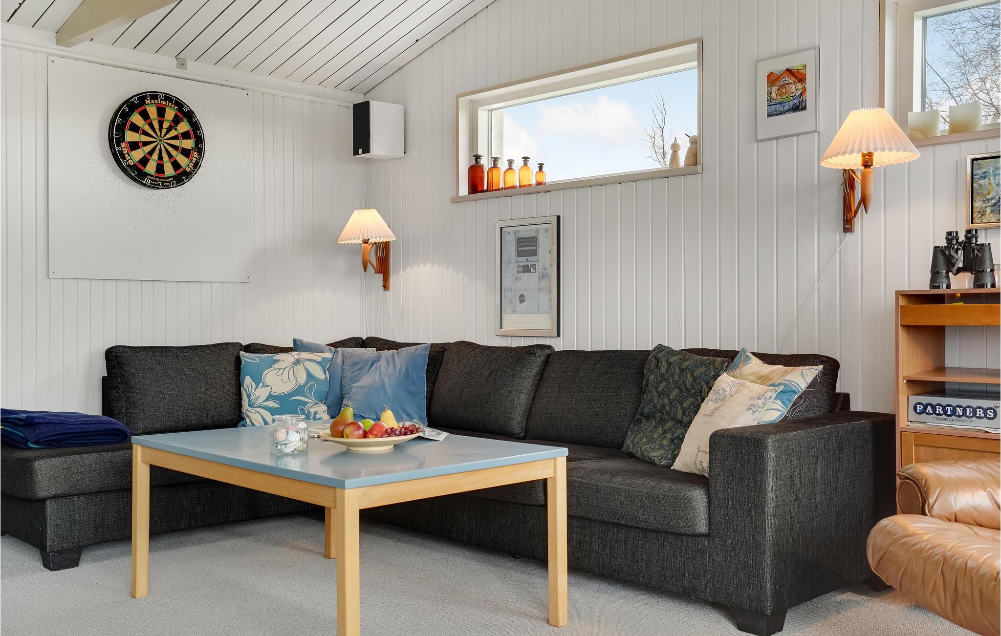 Velkommen til en fantastisk havudsigt og dette dejlige hus, som ligger på den fynske vestkyst. Her kan I slappe af i husets behagelige rammer og nyde det klare lys, som falder ind gennem de store vinduer. I den store stue kan I samles om forskellige aktiviteter som dart, hver jeres bog eller en god film i fjernsynet. Efter en lang dag på farten kan I gøre aftensmaden klar i det veludstyrede køkken.
