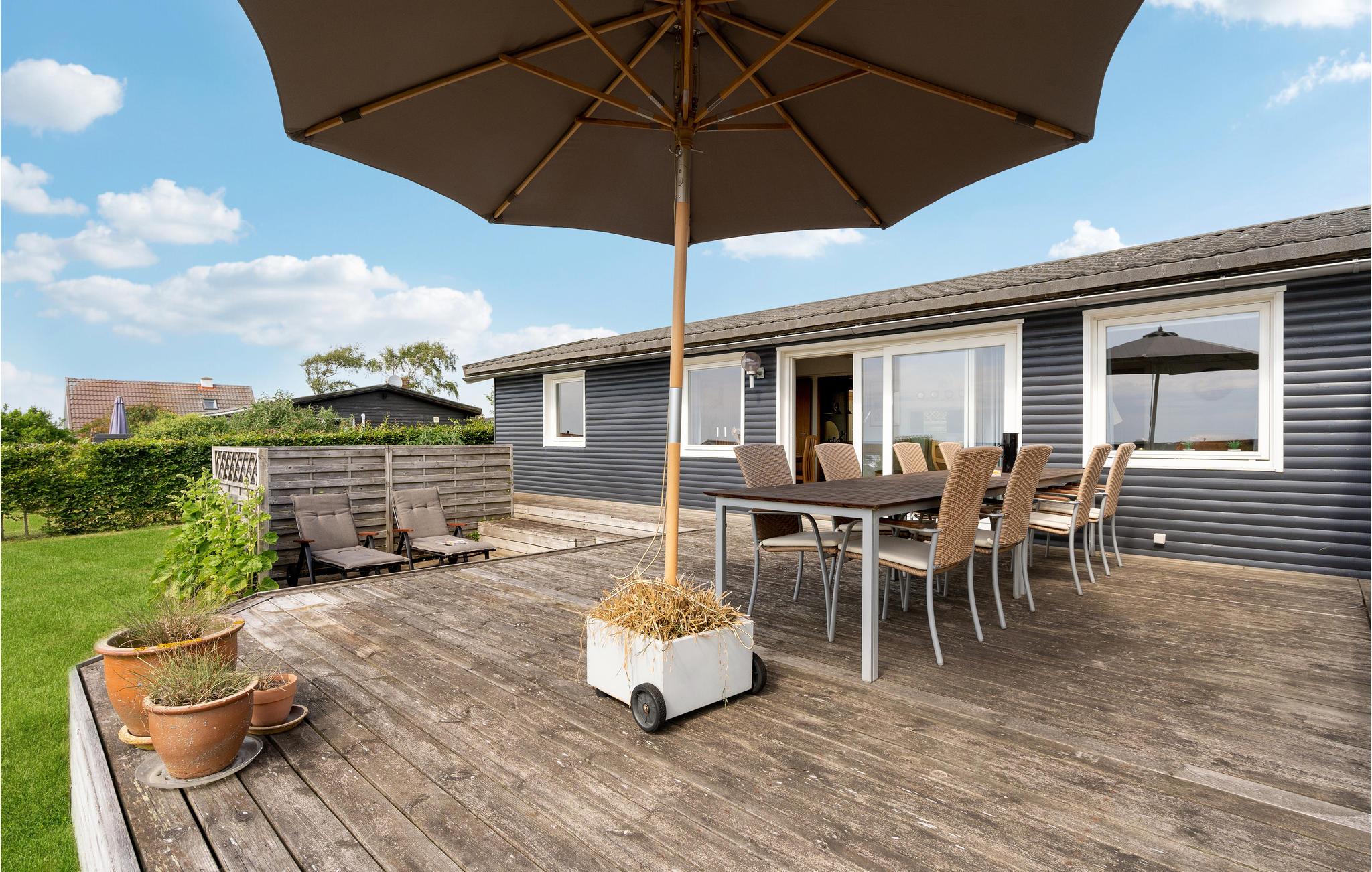 Den store træterrasse bliver jeres foretrukne sted i sommerhalvåret, for her kan I sætte jer med noget køligt i glassene og nyde udsigten til havet, mens solen går ned.