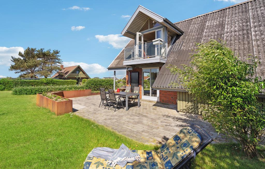 Hyggeligt feriehus nær Sandager Næs strand med stor have, to balkoner og aktiviteter for hele familien.