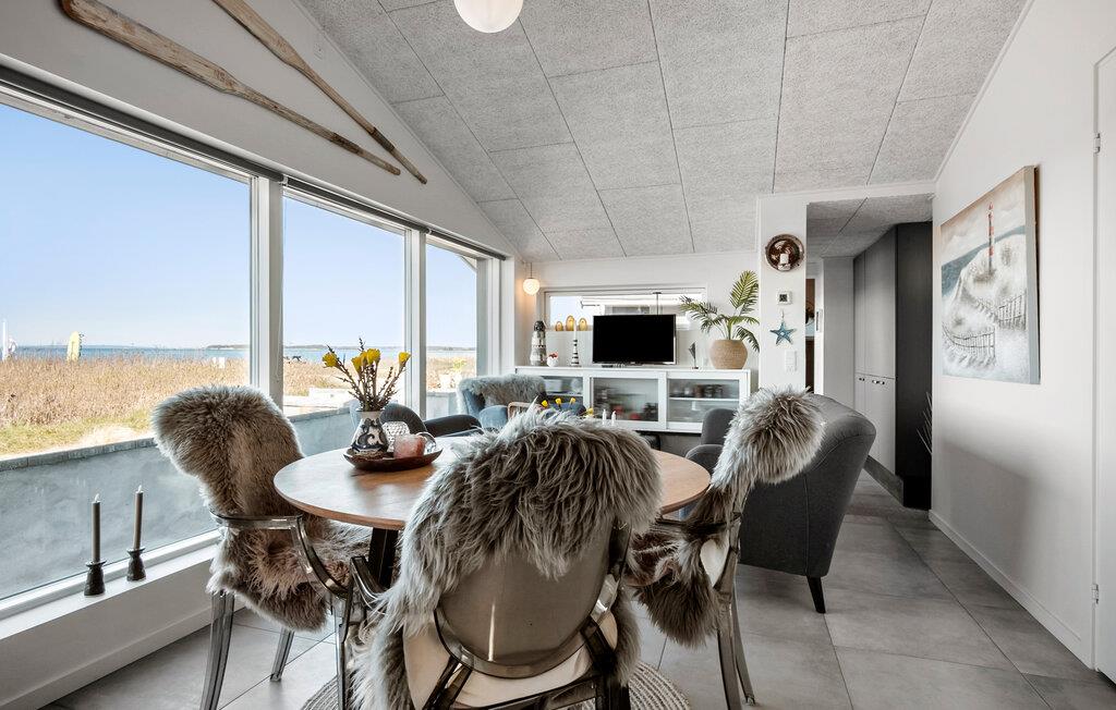 Dette charmerende sommerhus i Sandager Næs ligger kun få meter fra havet og byder på en imponerende panoramaudsigt over Lillebælt og Bågø. Huset er lyst, åbent og luftigt i sin indretning, med et dejligt lys fra vinduerne ud mod vandet. Skulle kulden banke på, er det rart at tænde op i alrummets brændeovn og nyde en kop kaffe, mens I kigger ud på omgivelserne.