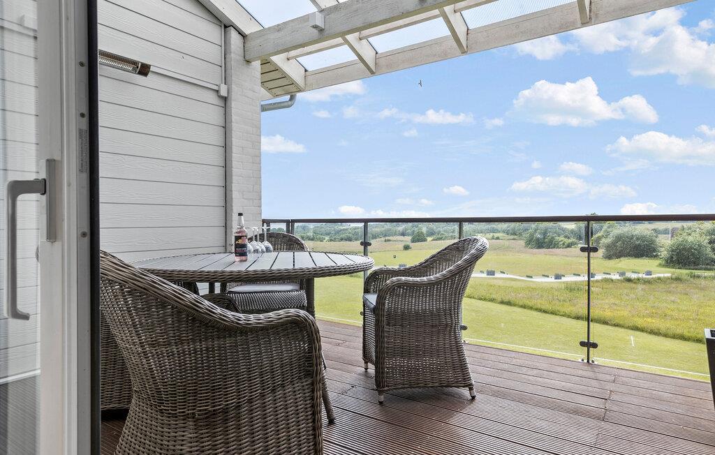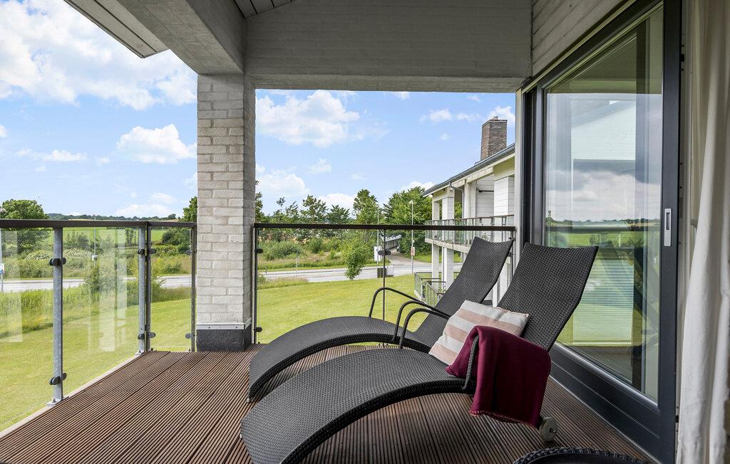 Velkommen til herlig ferie med tid til golf! Denne moderne, veludstyrede ferielejlighed byder på en fantastisk udsigt over golfbanen og Flensborg Fjord, så her kan I holde en skøn ferie ved den tysk-danske grænse. Her er der en skøn base til alle, der elsker golf og ønsker en ferie med god tid til at dyrke den skønne sportsgren. Ferielejligheden ligger på første sal og er stilfuldt indrettet og udstyret med alt, hvad I skal bruge til et behageligt ophold. Den lyse opholdsstue fører direkte ud til en rummelig altan og giver jer en hyggelig oase til de afslappende stunder. Nyd den betagende udsigt over golfbanen og havet, mens I slutter dagen af ??med et glas vin.
