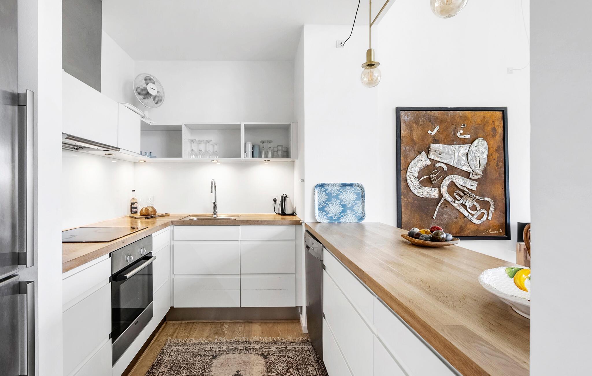 Jeres smagfuldt indrettede hus forener elegant stil med hjemlig komfort. Store vinduespartier lader det naturlige lys strømme ind, og de lyse opholdsrum indbyder til at læse bøger eller lytte til musik i en afslappet atmosfære. Tryl lækre måltider frem i det moderne køkken til familien, og nyd den skønne udsigt til det grønne. Derefter inviterer den behagelige sofa til rolige timer med en god film eller tilbagelænet afslapning.