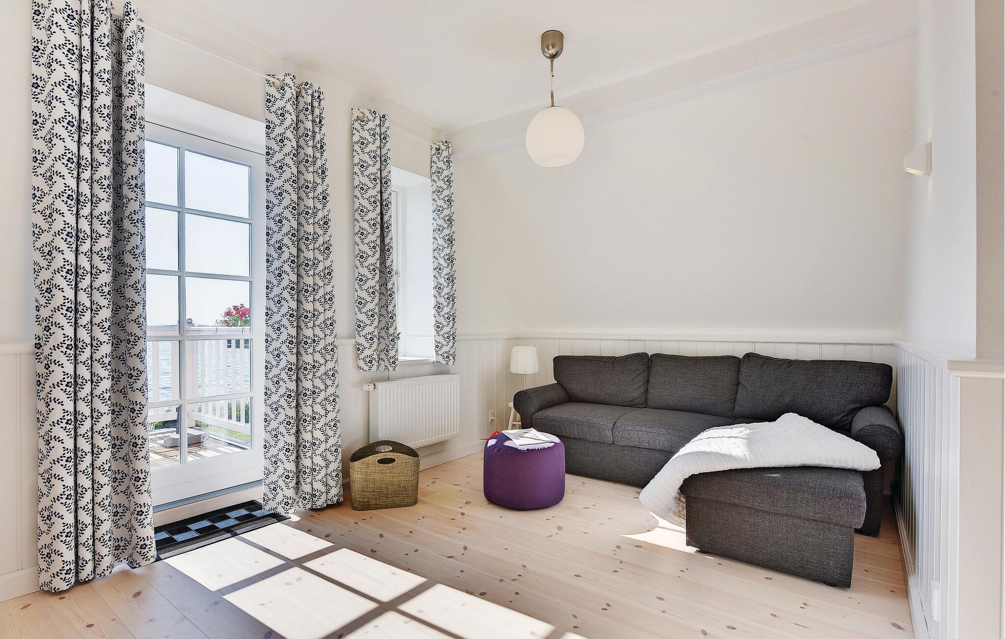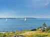 Balkonen svæver nærmest over vandet, og fra huset og terrasserne er der en fantastisk udsigt over havet. Sæt jer til rette med en kop kaffe og nyd det rolige syn af skibs- og bådtrafikken. I den velholdte have kan I dække op til en sommermiddag i skyggen fra det høje birketræ.