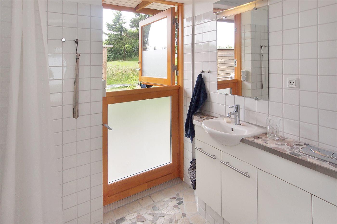 Flot, mindre sommerhus i træ, bygget i 2007, beliggende 50 m. fra vandet på en ugenert naturgrund, på en blind vej, med havudsigt fra såvel hus som grund. Til huset hører en stor åben terrasse med havemøbler, hvorfra udsigten også kan nydes. Indvendigt er huset velindrettet, uden spildplads, og har gode lysindfald især fra de store panoramavinduer mod vandet. Det åbne køkken, som er kombineret med spiseplads og sofahjørne, er bl.a. udstyret med opvaskemaskine, varmluftovn, komfur med keramiske kogeplader samt fryser(100 liter). I alrummet findes der ligeledes TV (digital) samt DVD-afspiller. Husets sovepladser fordeler sig på 1 lille soveværelse med dobbeltseng i stueetagen, der kan lukkes af med skydedør. Badeværelset er indrettet med badekar og bruser. Et skønt sommerhus fredeligt beliggende i et naturskønt område med gode fiskemuligheder.