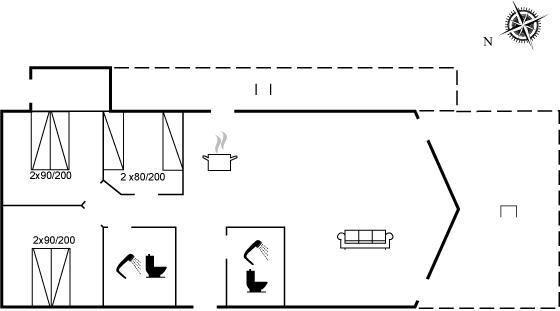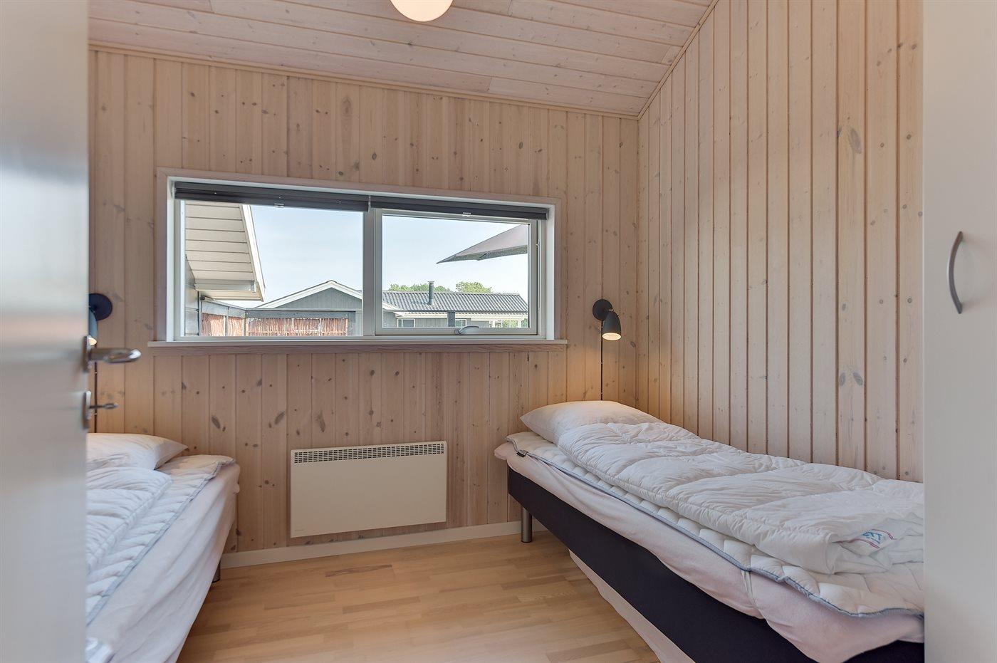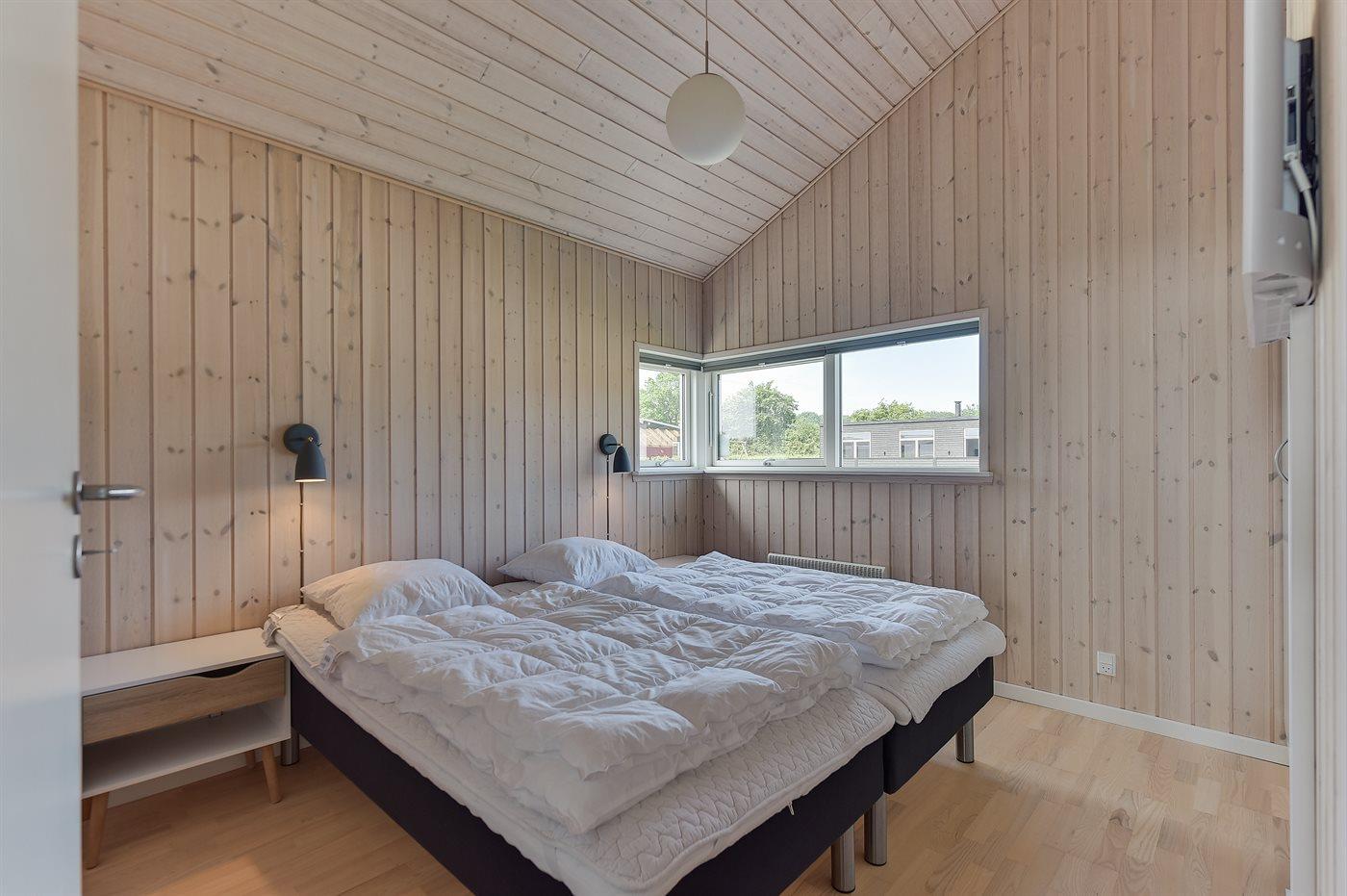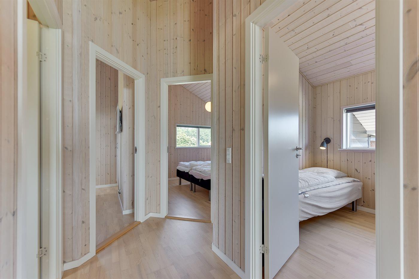 Der er i alt 3 soveværelser. Sovepladserne fordeler sig på: 4 sovepladser i dobbeltsenge. 2 sovepladser i enkeltsenge. Derudover er der 1 stk. barneseng.