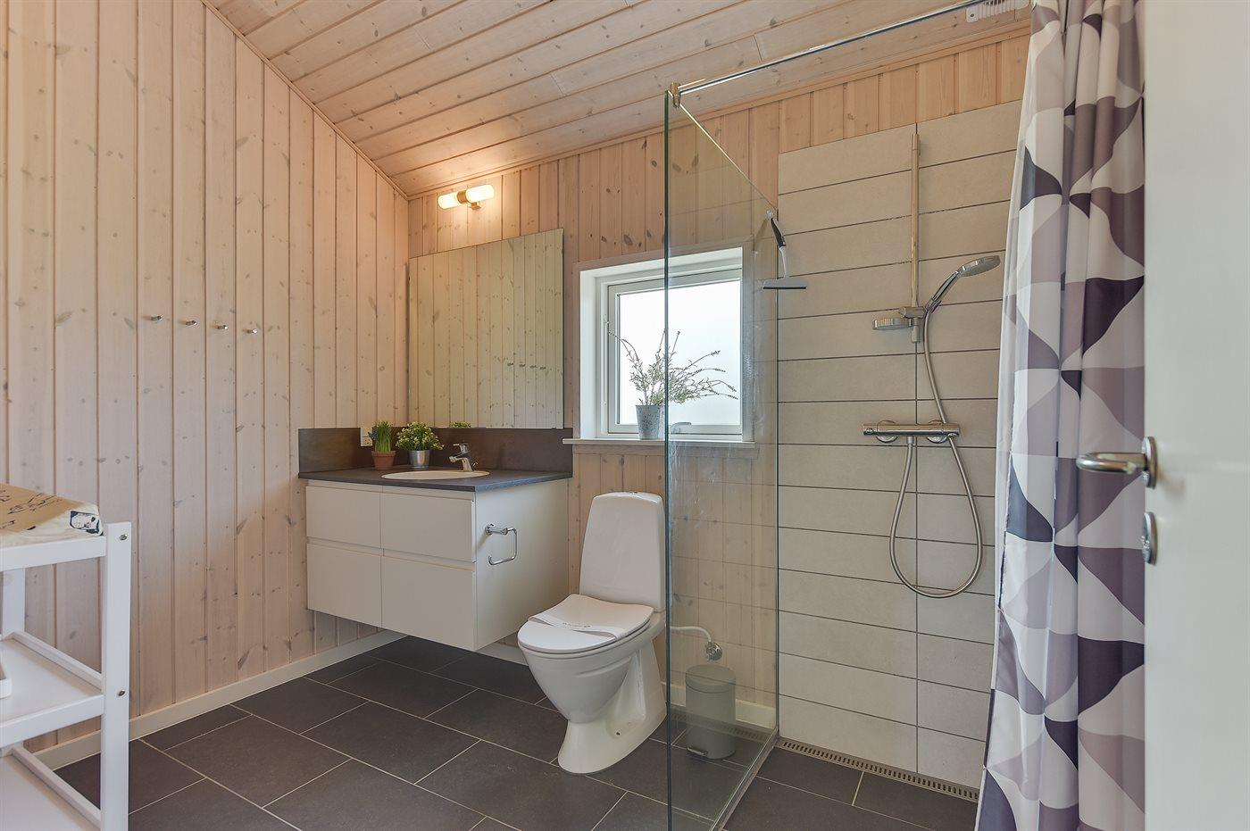 Der er 2 badeværelser med bruseniche og 2 toiletter. Der er gulvvarme på 2 badeværelser.