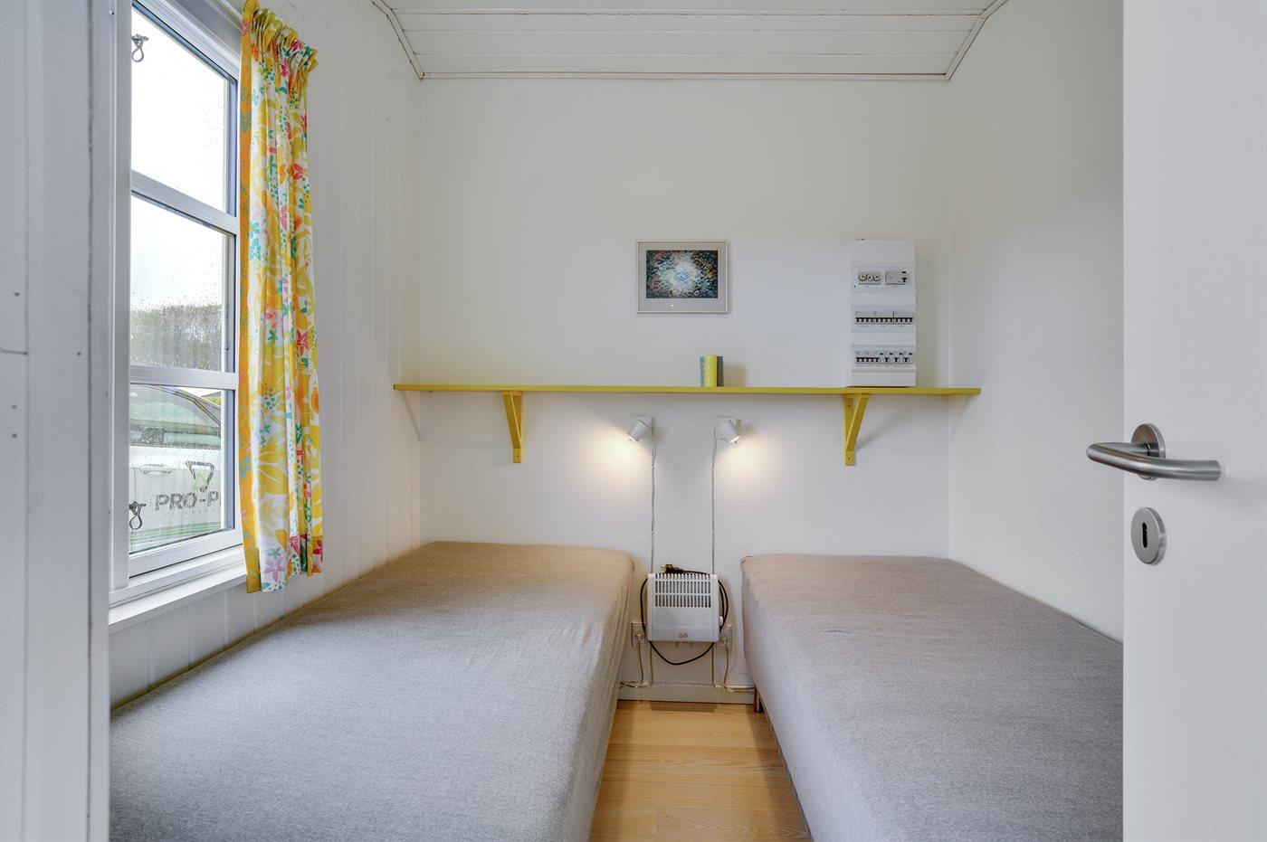 Der er i alt 3 soveværelser. Sovepladserne fordeler sig på: 2 sovepladser i dobbeltseng. 3 sovepladser i enkeltsenge. Derudover er der 1 stk. barneseng.