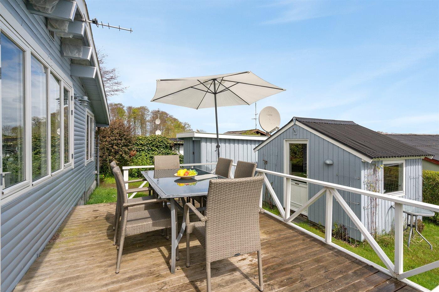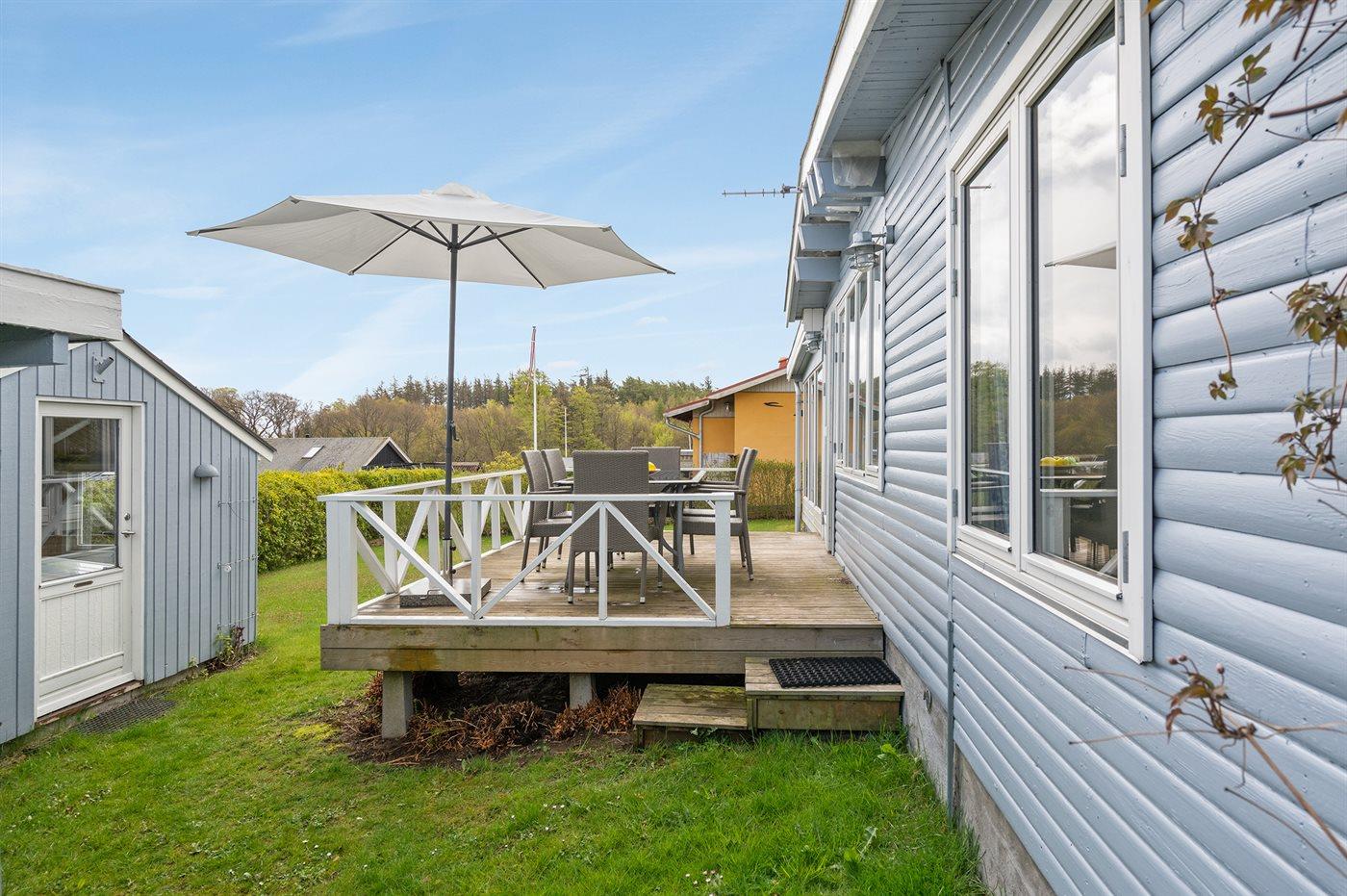Ferieboligen er beliggende på en 400 m² stor naturgrund. Der er 200 m til havet. Nærmeste forretning er beliggende i en afstand af 500 m. Til ferieboligen hører 12 m² terrasseareal. Grill til rådighed. Parkering ved ferieboligen.