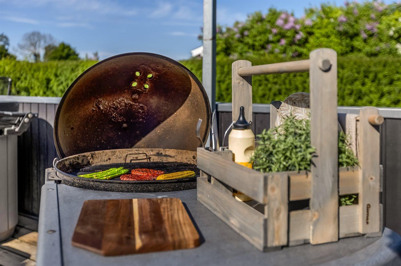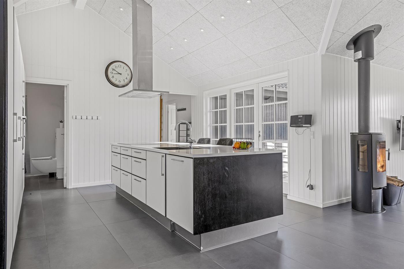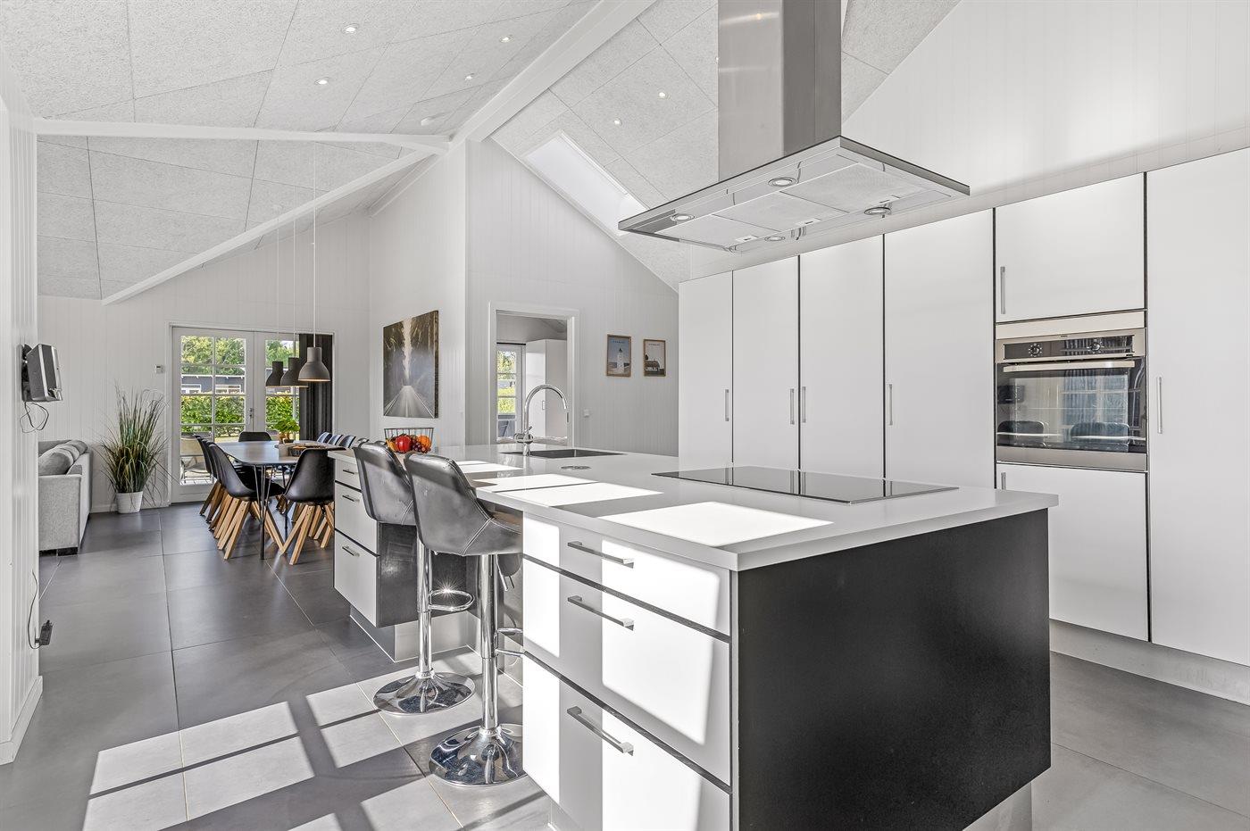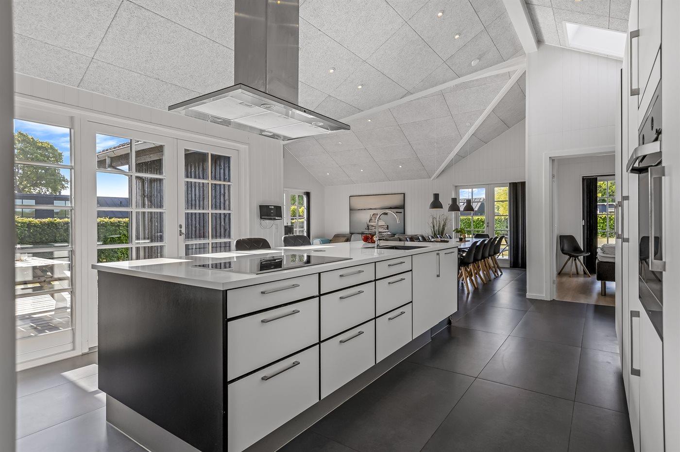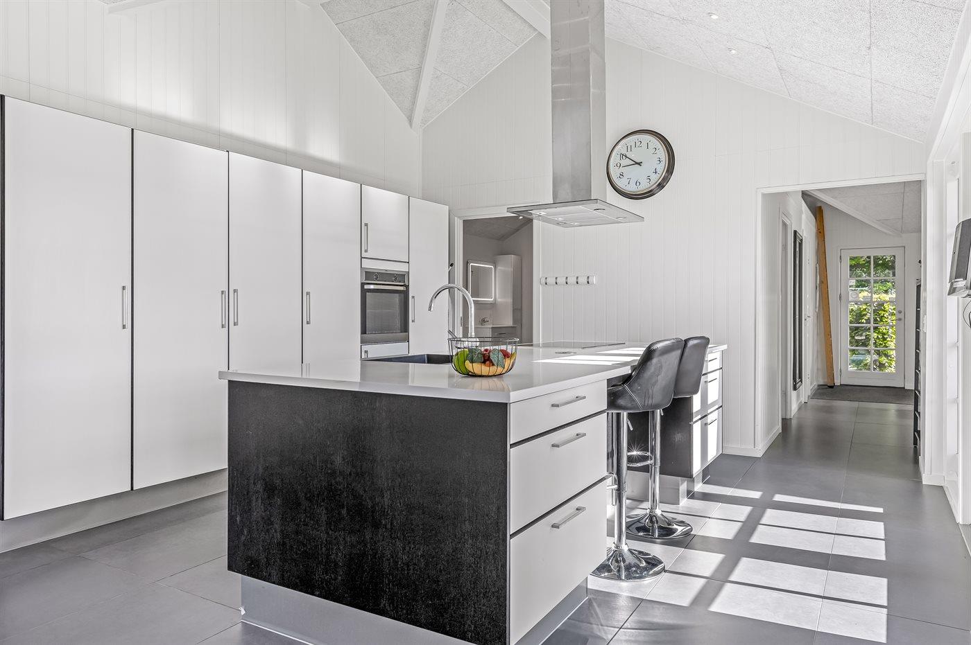 Køkkenet er udstyret med 1 køleskab. Der er 4 induktionskogeplader, varmluftovn, mikrobølgeovn samt opvaskemaskine.