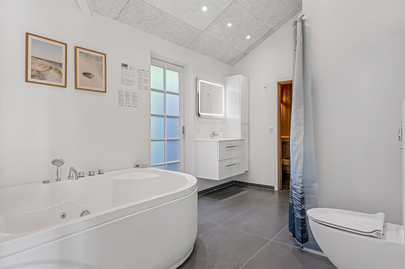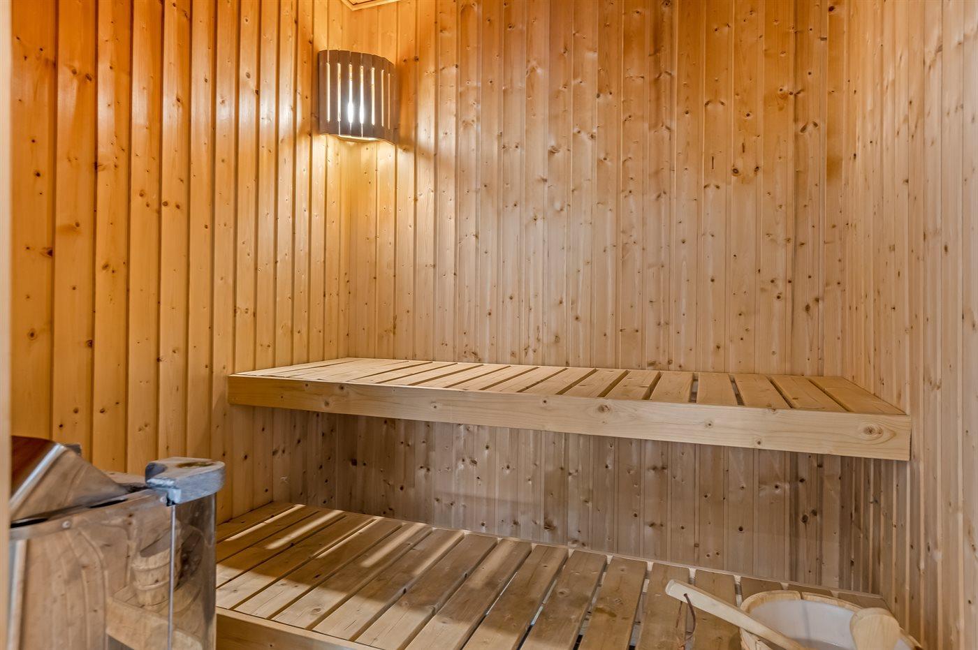 Der er 2 badeværelser med bruseniche og 2 toiletter. Der er gulvvarme på 2 badeværelser. I saunaen er der mulighed for afslapning.