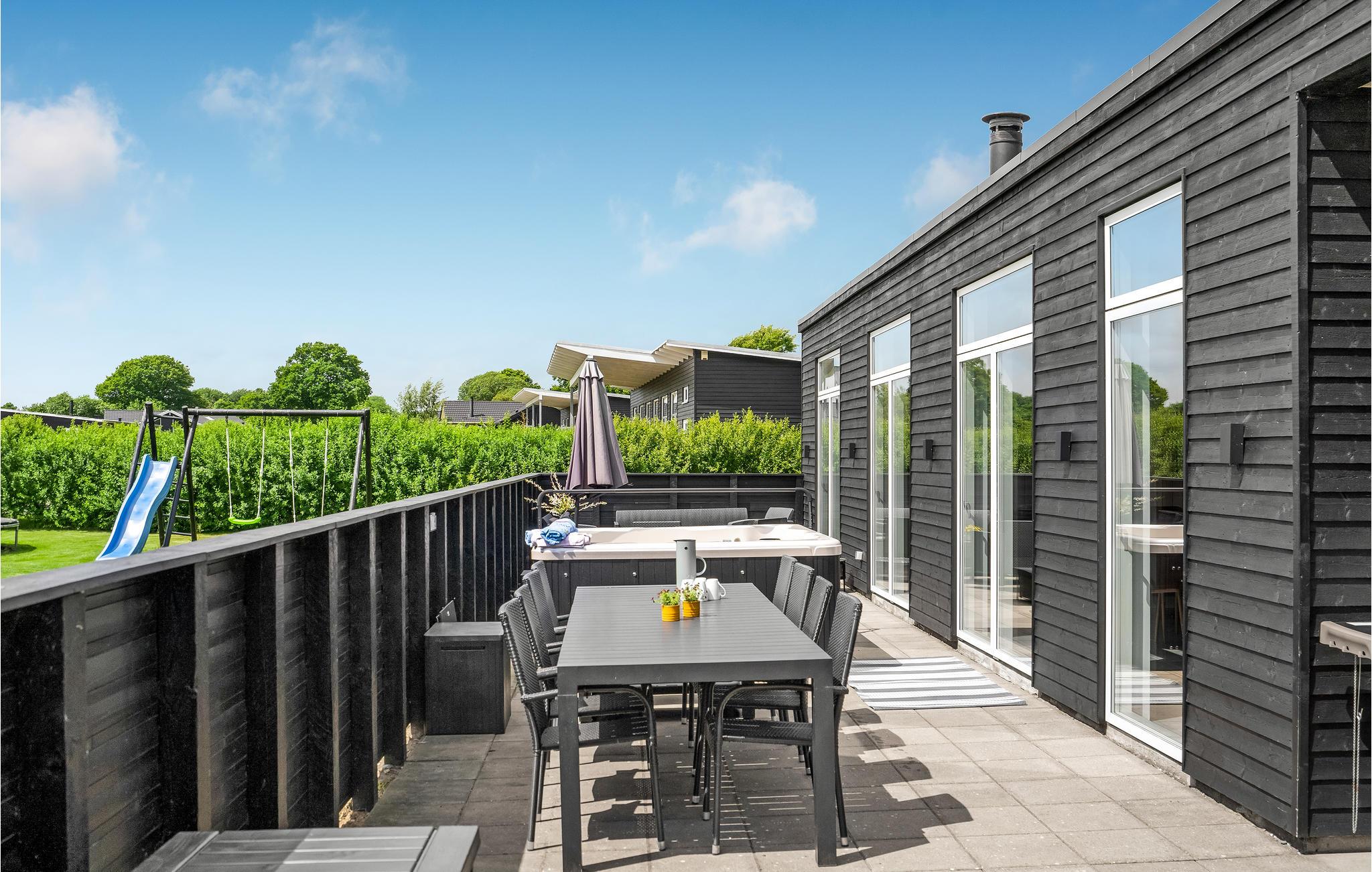 Det dejlige kombinerede køkken/alrum med opholdsstue har god plads til alle, og på kølige aftener kan I mødes omkring brændeovnen. Der er også tre gode soveværelser med kvalitetssenge, så nattesøvnen er sikret. Desuden et flot badeværelse indeholdende et dejligt to-personers spabad og adgang til en infrarød sauna. I den anden sektion er der yderligere to soveværelser med plads til tre personer i hvert rum, og naturligvis har afdelingen eget badeværelse, så huset er yderst velegnet til flere familier. I har også et dejligt 6-personers udespa til rådighed, hvor I kan sidde og slappe skønt af i det varme vand i både solskin, regnvejr og sågar mens sneen daler. Til børnene findes der både sandkasse, trampolin og gynge.