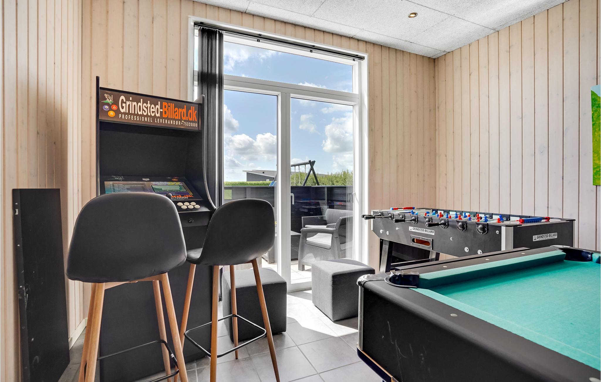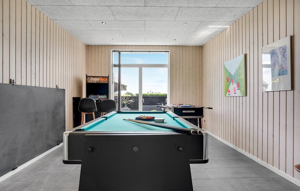 Huset er opført i to sektioner med en stor, overdækket terrasse imellem, hvor hovedhuset er indrettet med et aktivitetsrum, der er udstyret med billard, bordtennis og air hockey. Der er også bordfodbold og en arkademaskine med hele 3000 spil til jeres underholdning!
