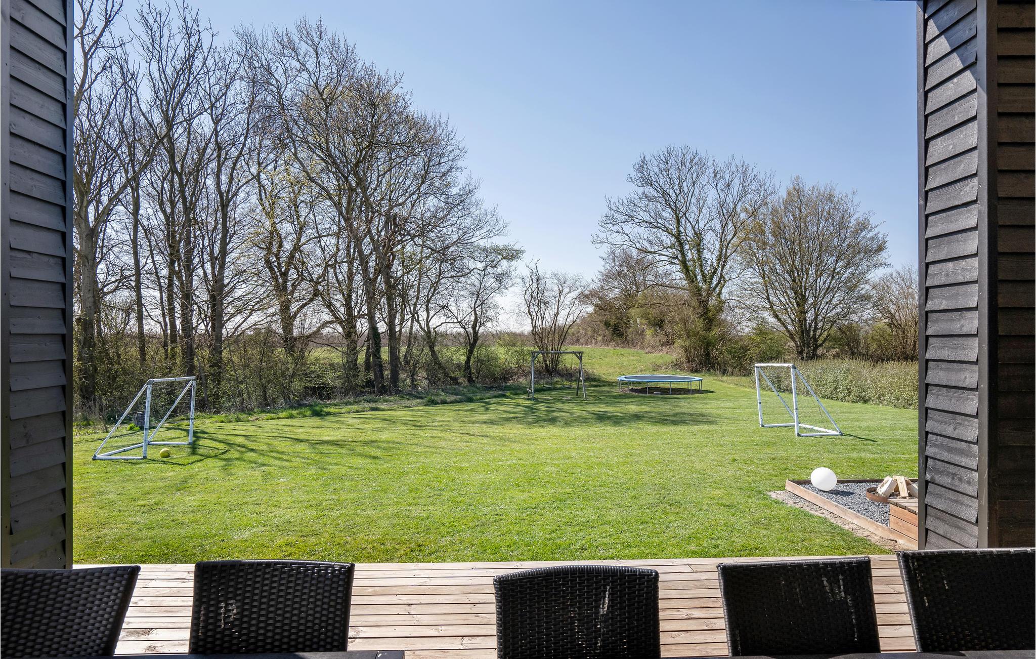 Udendørs kan børn og barnlige sjæle hygge sig i både sandkassen, på gyngen eller trampolinen, ligesom der er en lille bålplads, hvor I kan lave snobrød. Der også vildmarksbad, hvor I kan nyde sommeraftnerne.